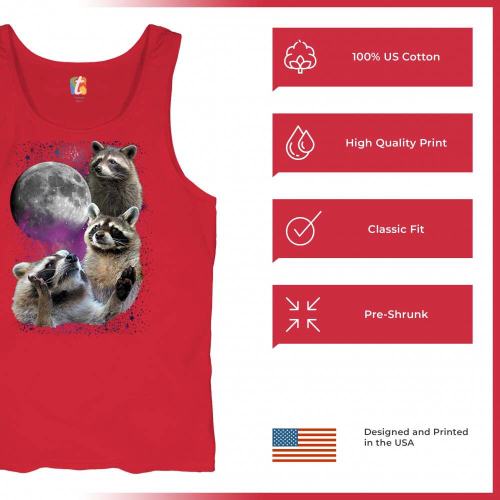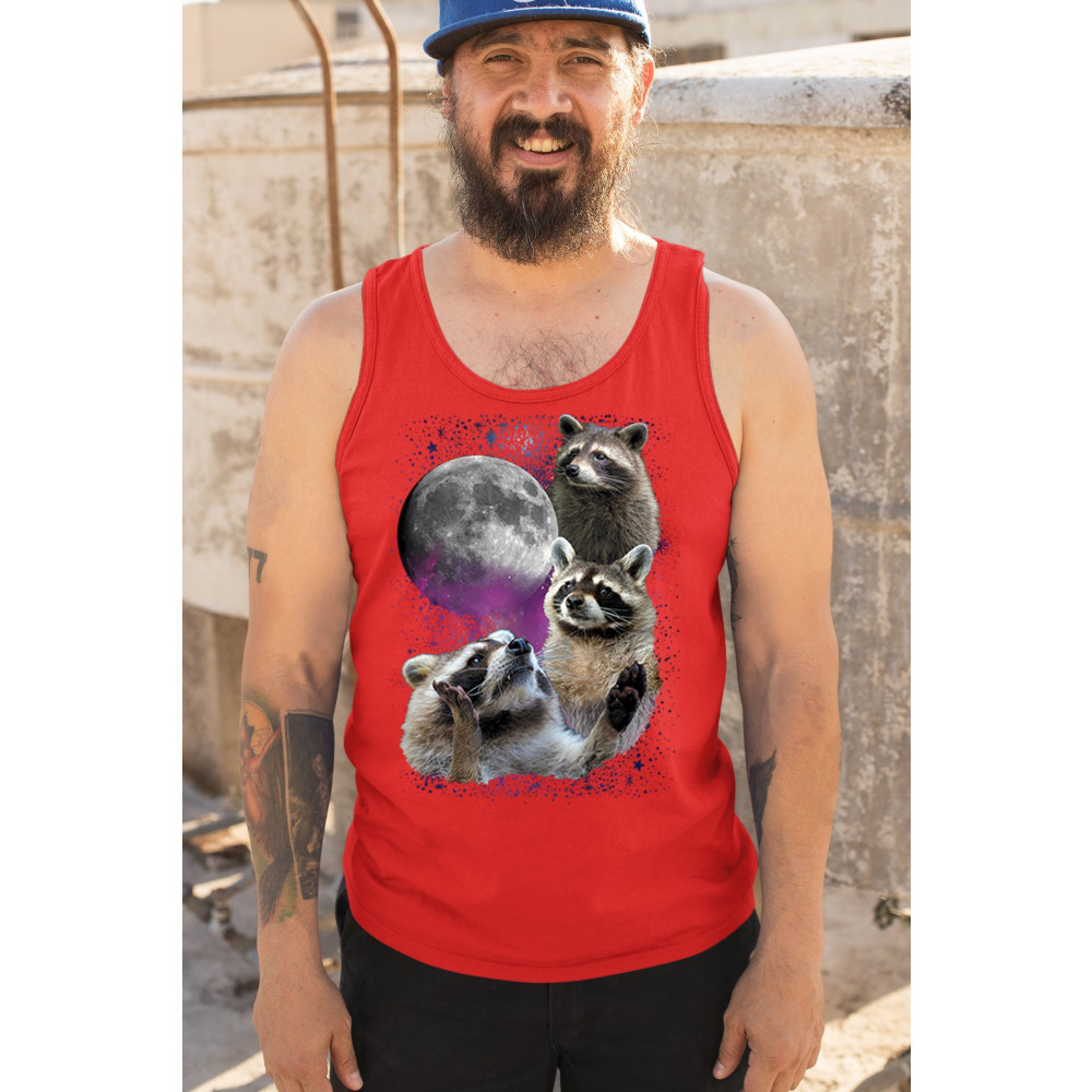 Step into the wild with this delightful and quirky raccoon and moon design. This captivating graphic features three raccoons against a backdrop of a starry night sky and a full moon, evoking the mysterious beauty of the wilderness. Perfect for nature lovers and those who appreciate nocturnal creatures with a silly twist, this design is a versatile addition to any casual wardrobe. It's ideal for outdoor adventures, relaxed outings, or themed events, and makes a thoughtful gift for anyone who loves the night and its charming wildlife.