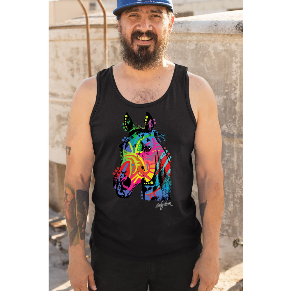 Bold rainbow horse head design with abstract pop art style. Great for equestrians, color lovers, and fans of modern animal artwork.