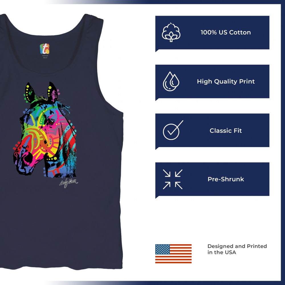 Bold rainbow horse head design with abstract pop art style. Great for equestrians, color lovers, and fans of modern animal artwork.