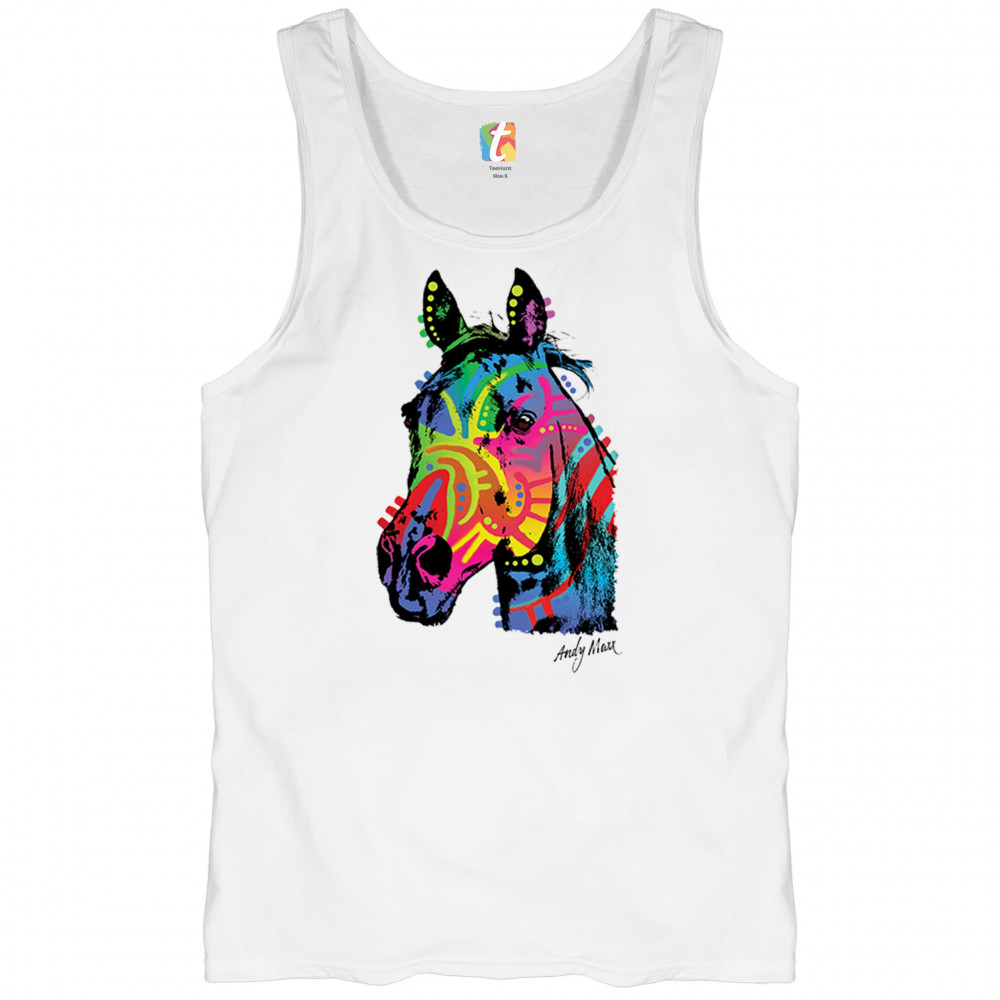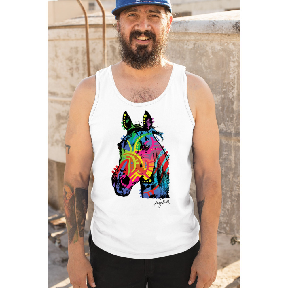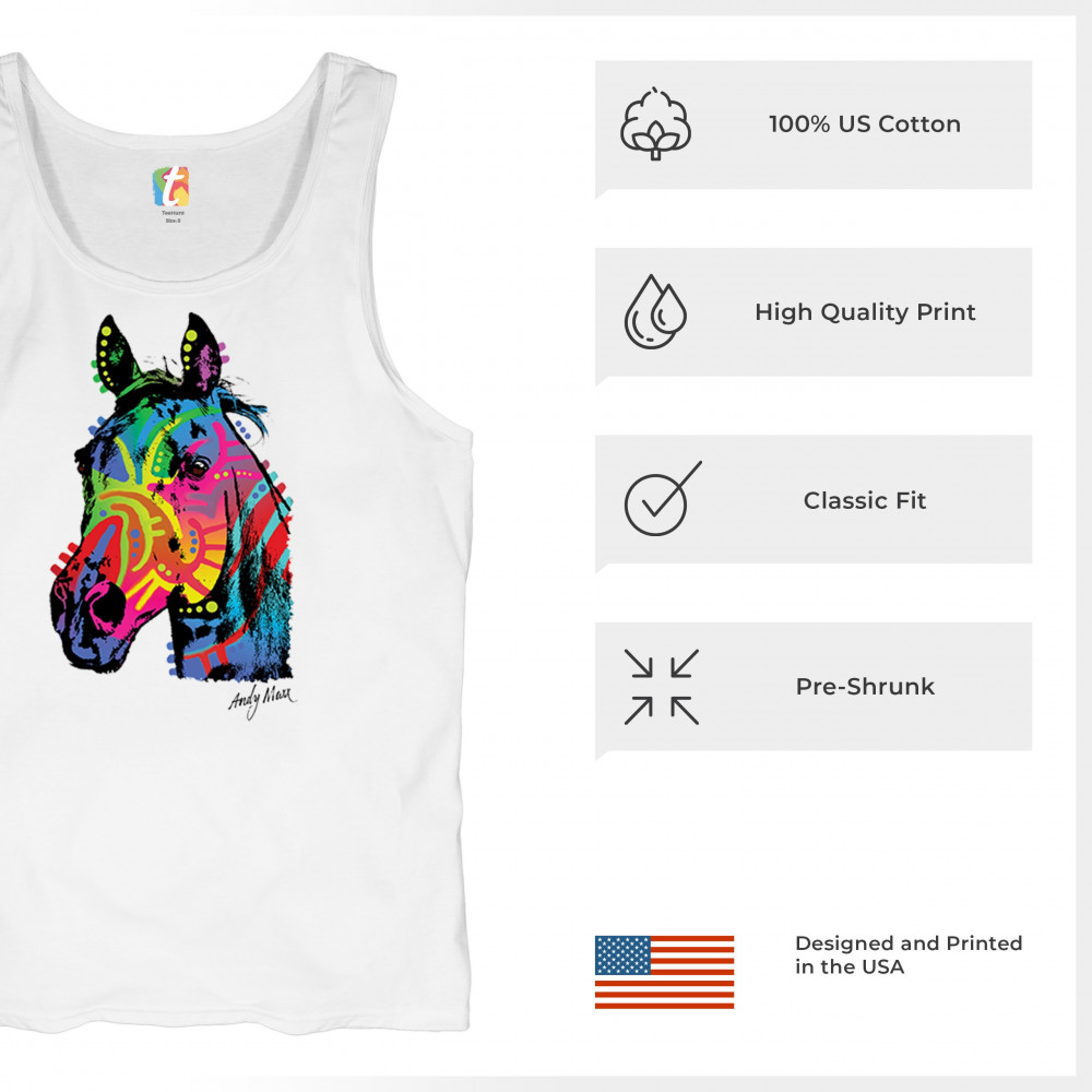 Bold rainbow horse head design with abstract pop art style. Great for equestrians, color lovers, and fans of modern animal artwork.