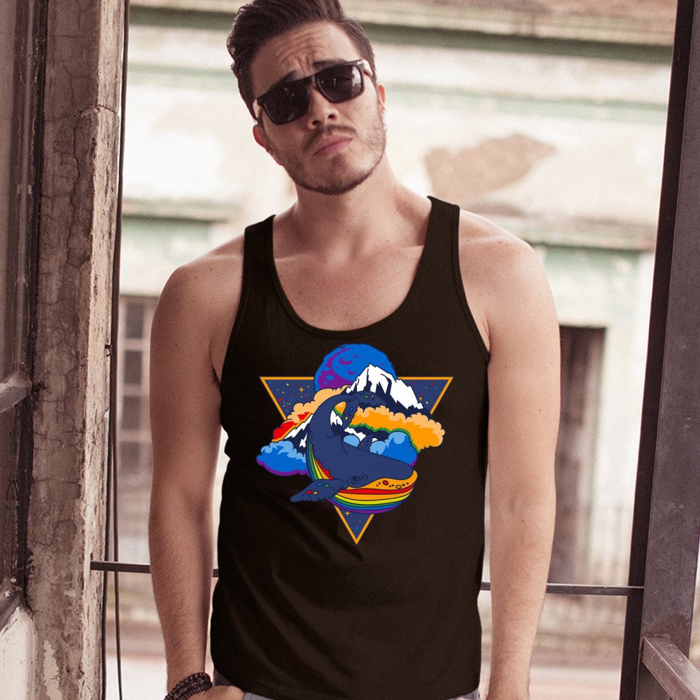 RAINBOW SPACE WHALE tank top lgbt pride queer tolerance trippy men's top black