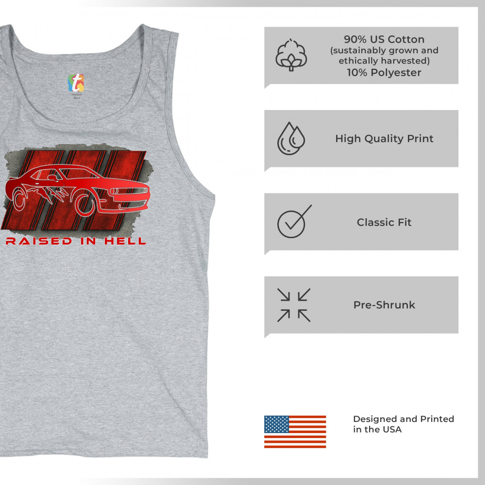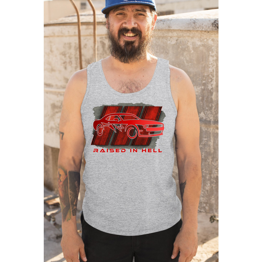 Bring heat to the streets with this Raised in Hell design. Featuring a blazing red muscle car and aggressive claw marks, it's perfect for Scat Pack lovers, burnout warriors, and throttle addicts. Whether you're tearing down the strip or parked at the meet, this design delivers pure muscle attitude and street-born fire.