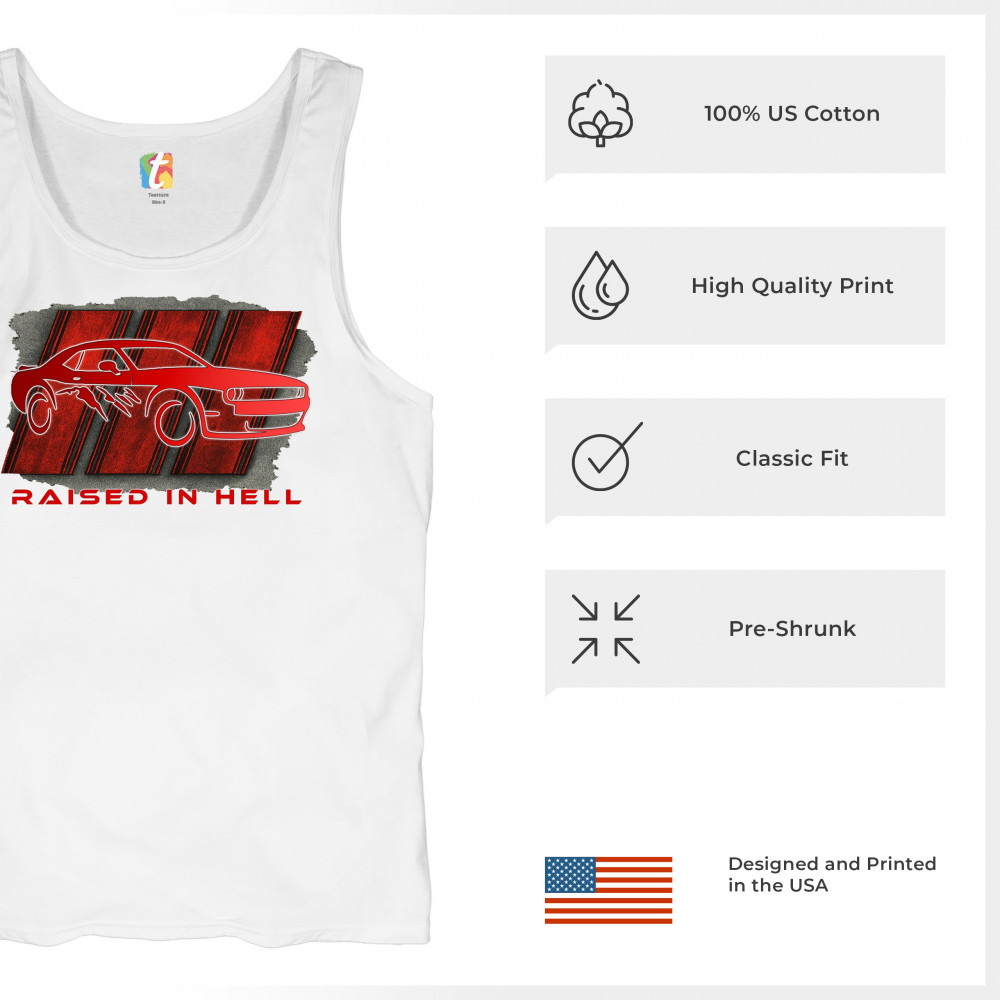 Bring heat to the streets with this Raised in Hell design. Featuring a blazing red muscle car and aggressive claw marks, it's perfect for Scat Pack lovers, burnout warriors, and throttle addicts. Whether you're tearing down the strip or parked at the meet, this design delivers pure muscle attitude and street-born fire.