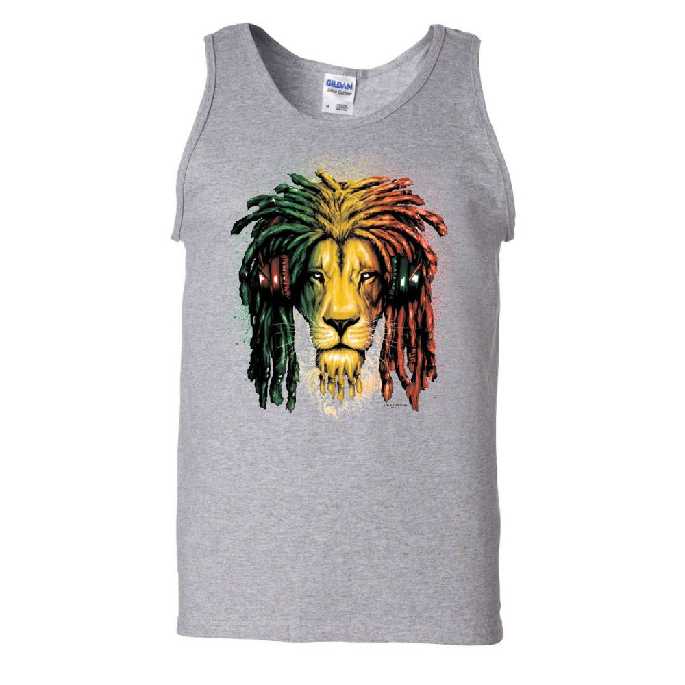 RASTA LION WITH HEADPHONES 420 rasta lion with headphones tank top reggae smoking jamaica 420 gray