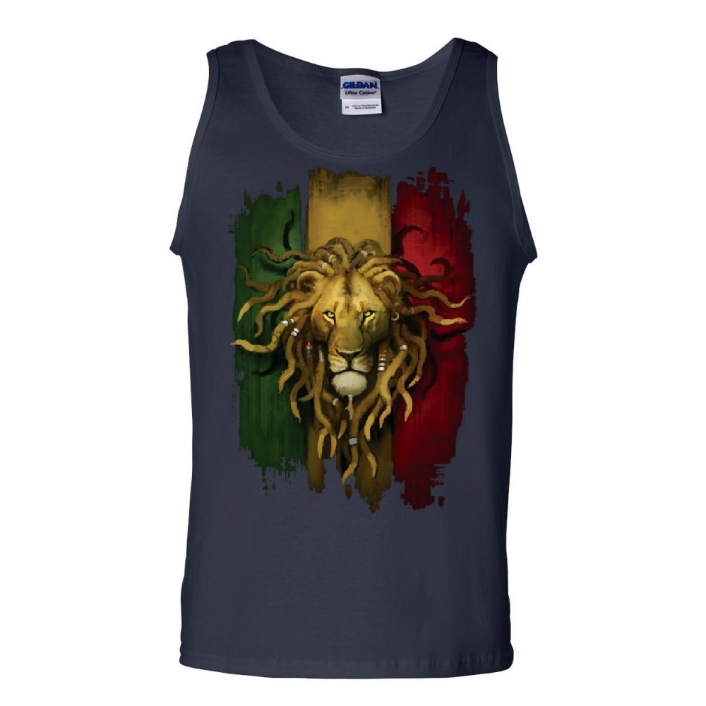 RASTA LION tank top jah jamaica reggae marijuana 420 weed zion sleeveless navy blue