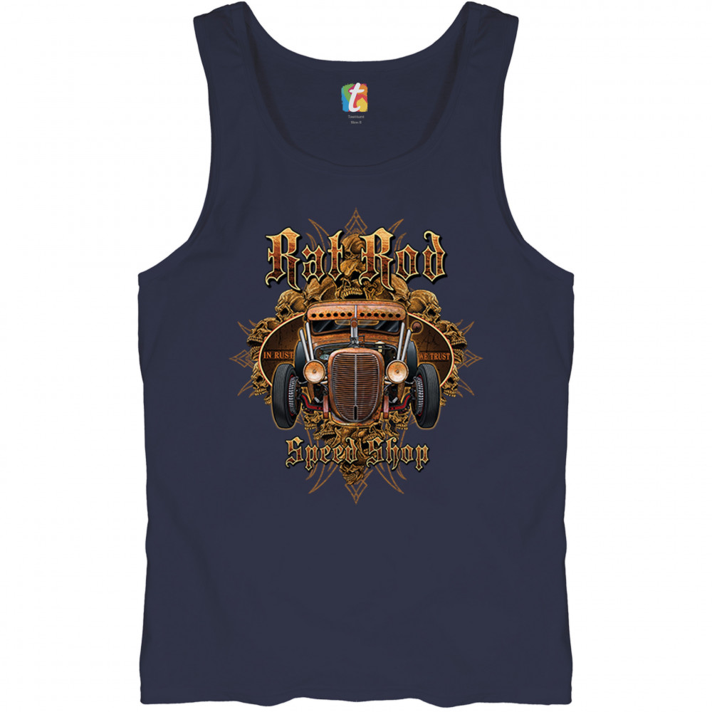 RAT ROD IN RUST WE TRUST tank top hot rod route 66 old school men's top navy blue