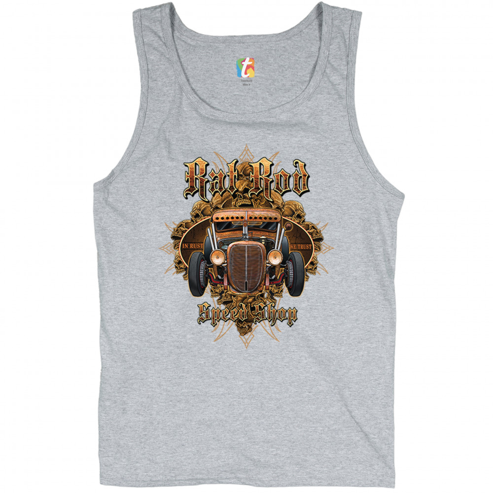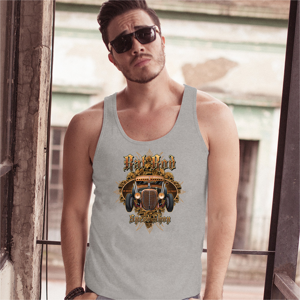 RAT ROD IN RUST WE TRUST tank top hot rod route 66 old school men's top gray