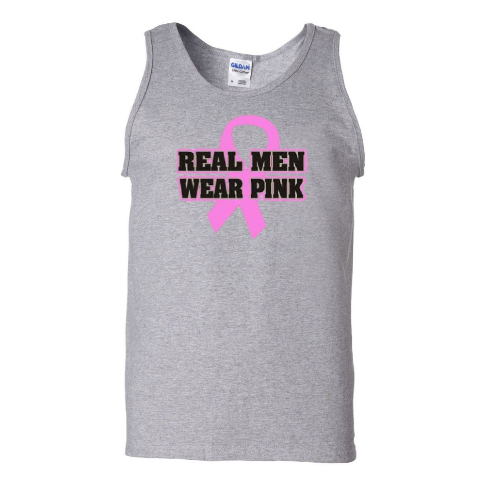 REAL MEN WEAR PINK tank top breast cancer awareness gray