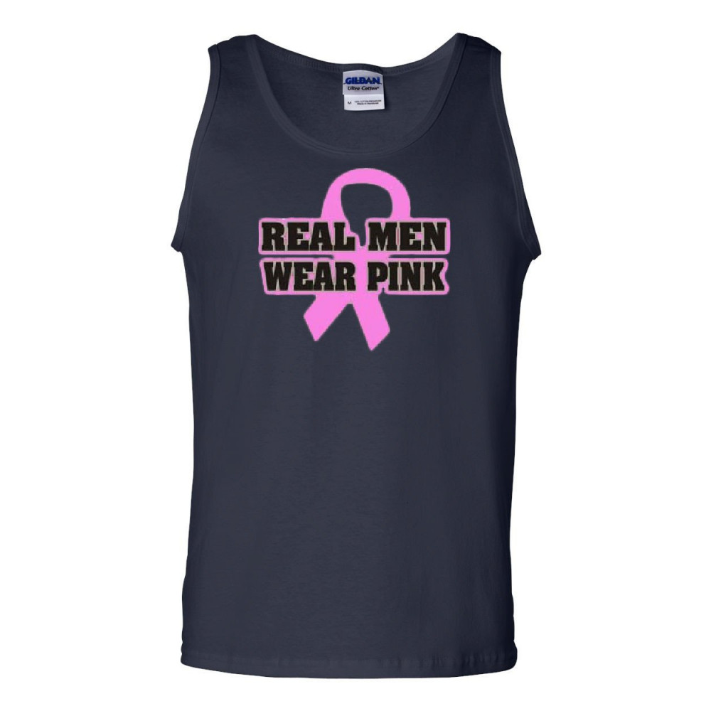 REAL MEN WEAR PINK tank top breast cancer awareness navy blue