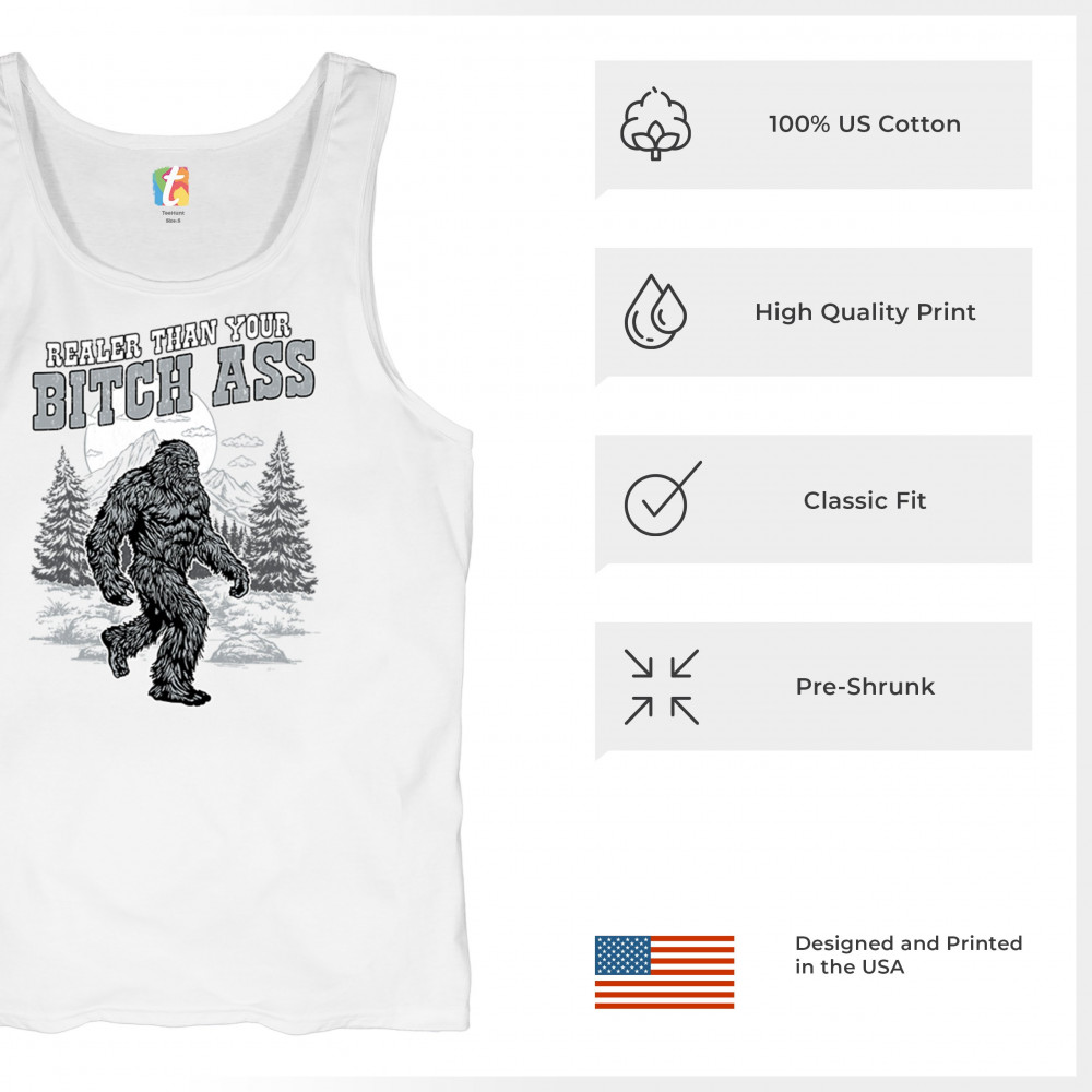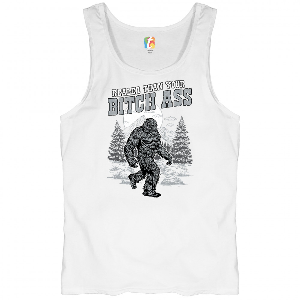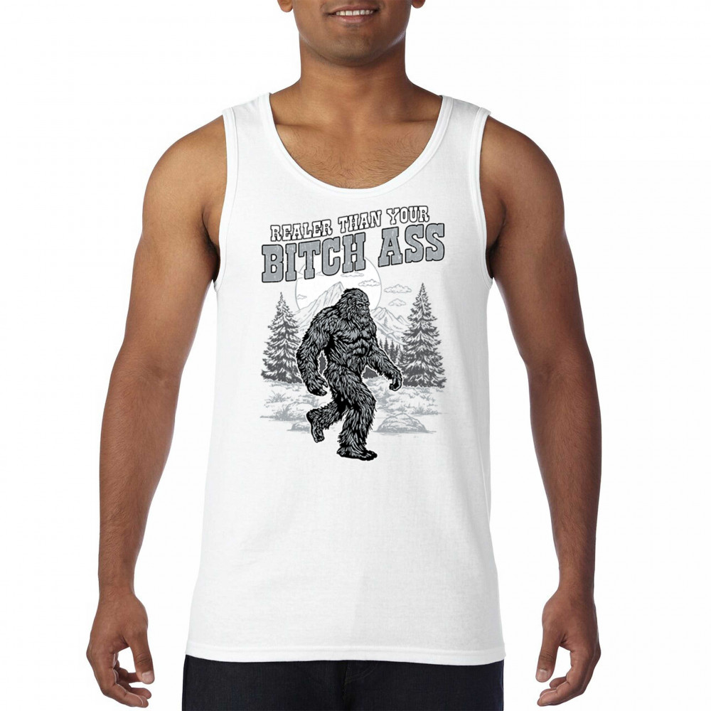 Edgy Bigfoot design with sarcastic cryptid humor and gritty wilderness style. Great for trolls, jokers, and rugged outdoors fans.