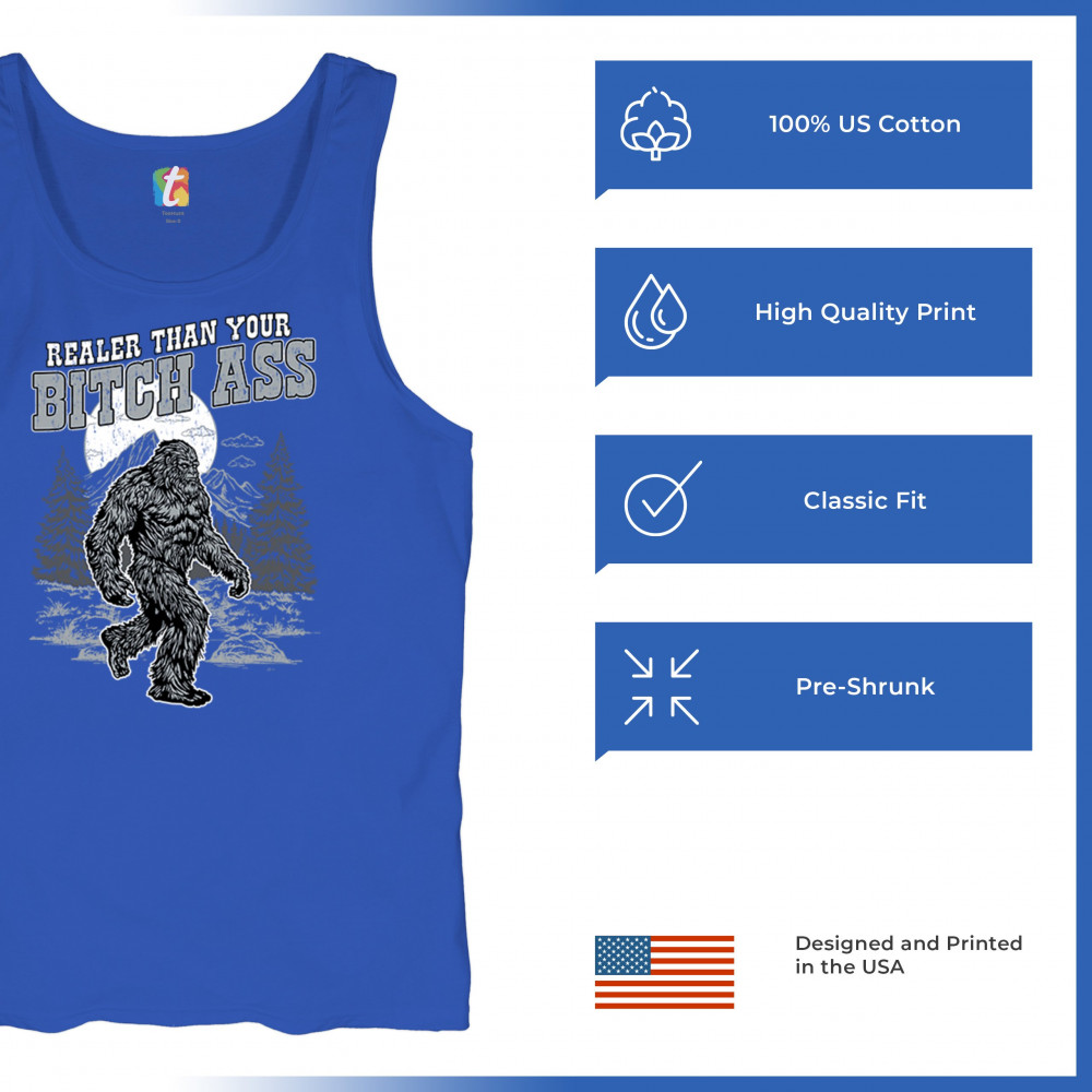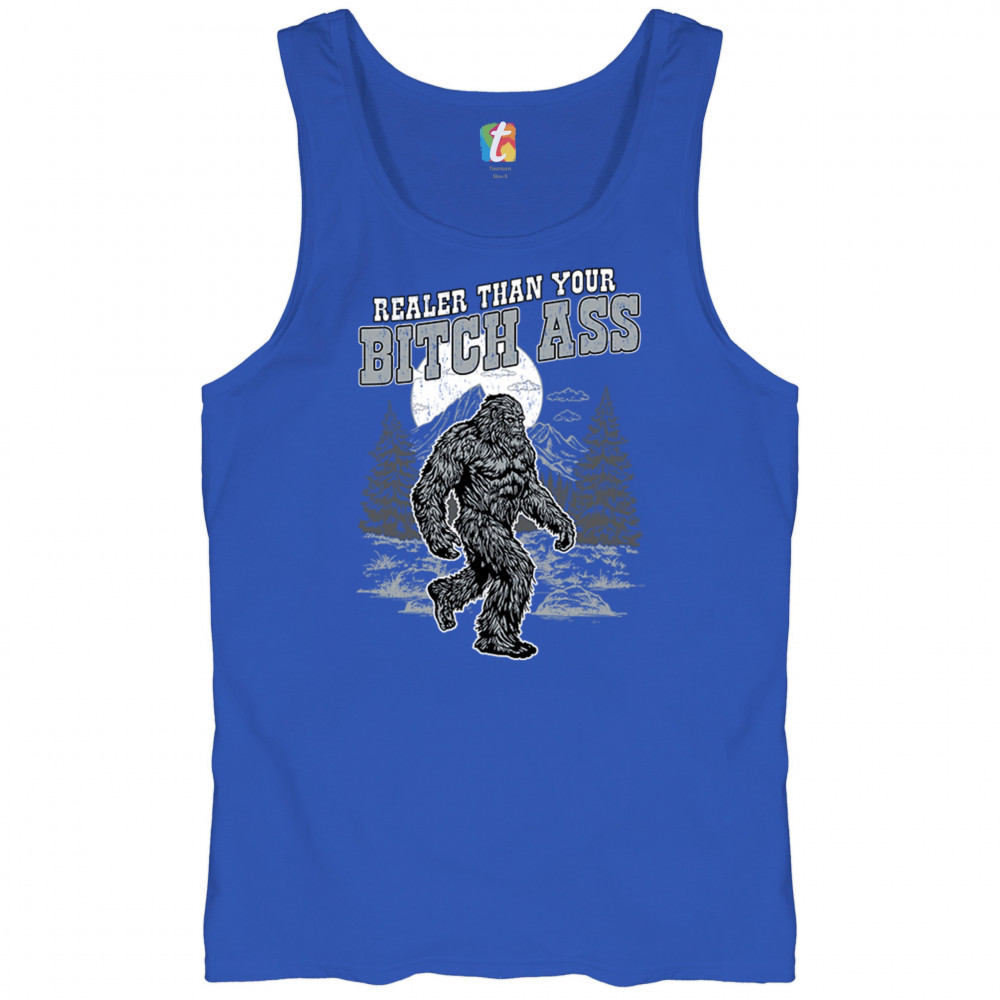 Edgy Bigfoot design with sarcastic cryptid humor and gritty wilderness style. Great for trolls, jokers, and rugged outdoors fans.