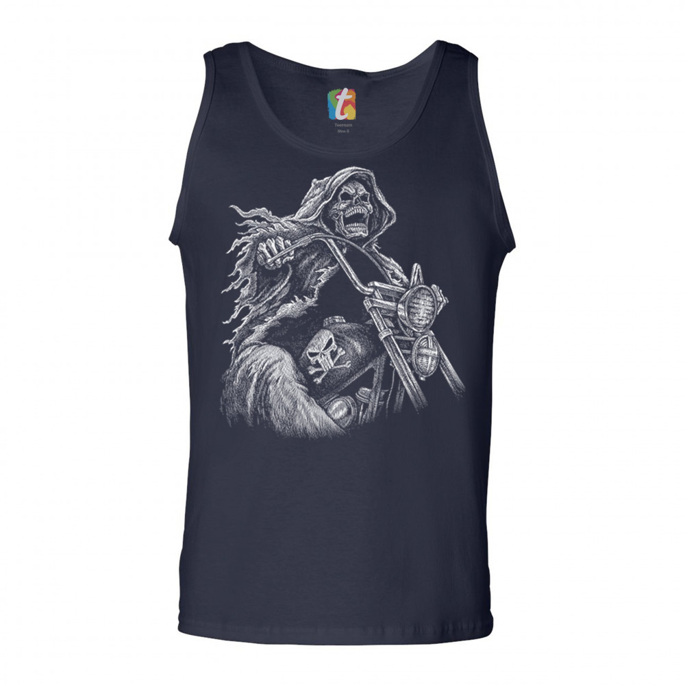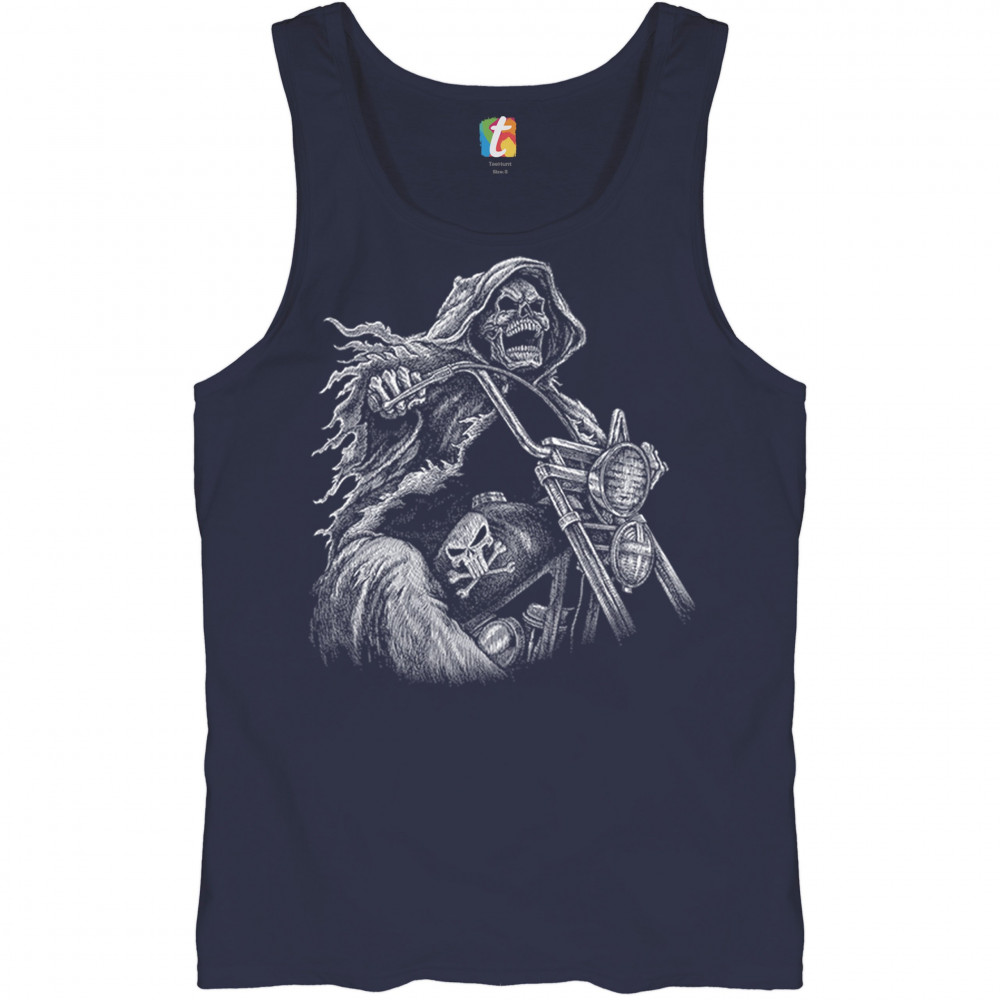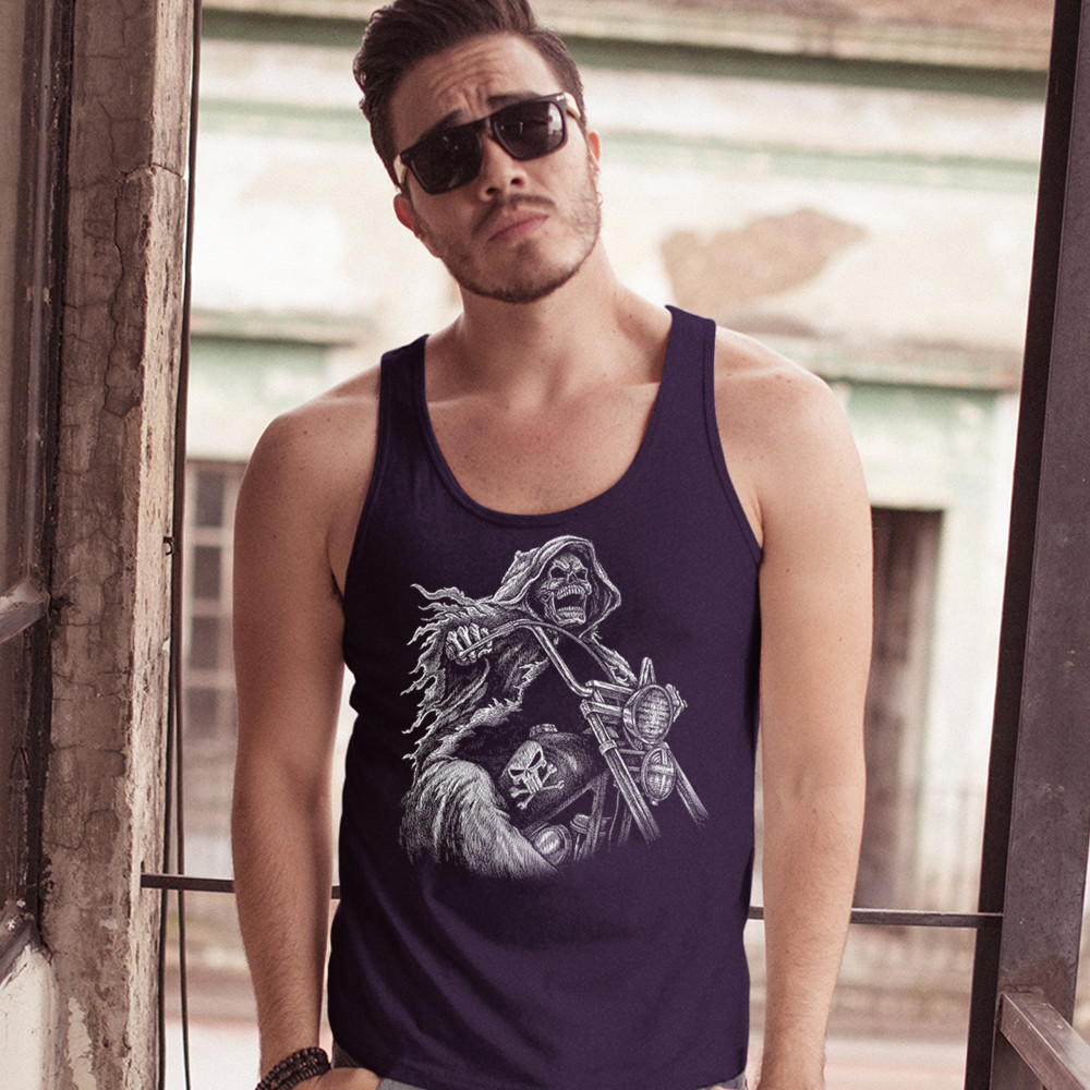 REAPER BIKER tank top ride or die skeleton biker forever motorcycle men's top navy blue