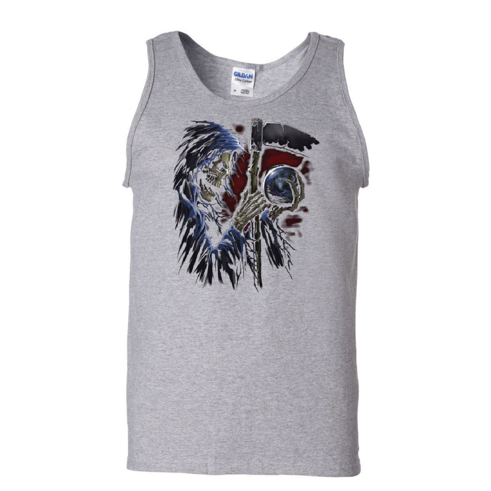 REAPER SPHERE SCYTHE tank top death skull creepy scary monster sleeveless gray
