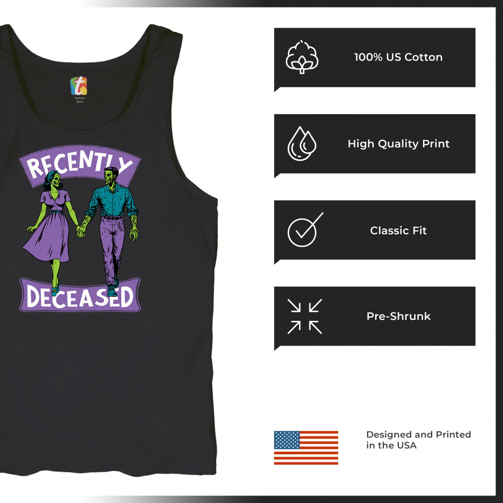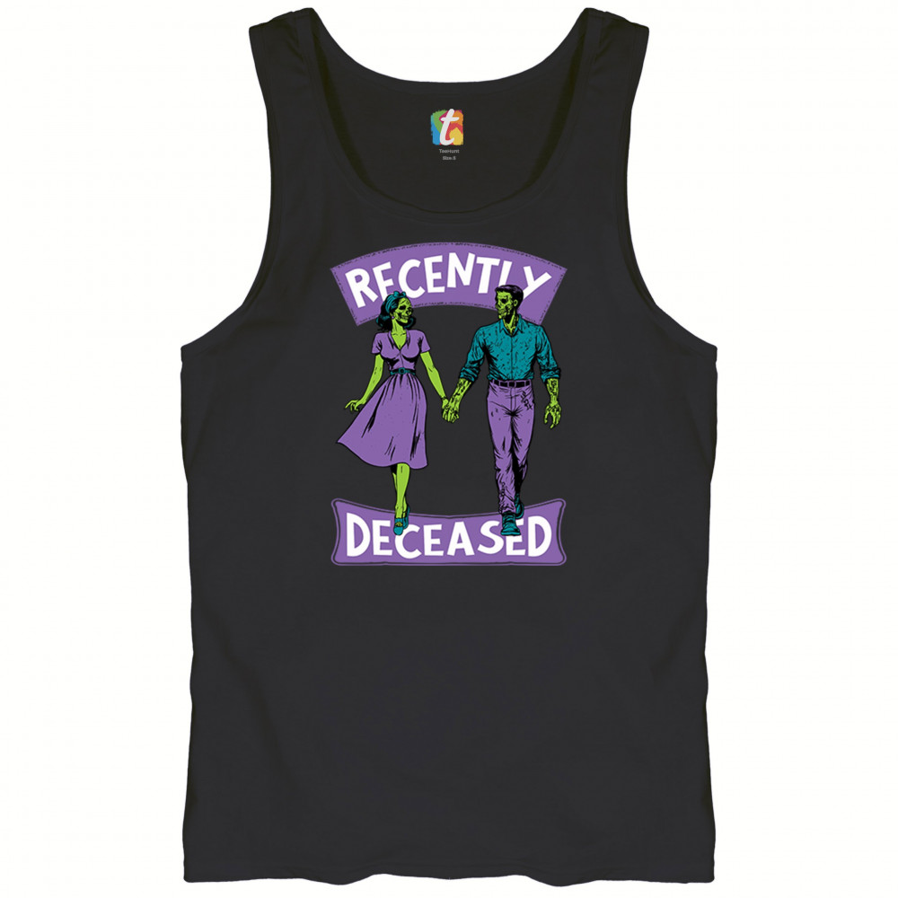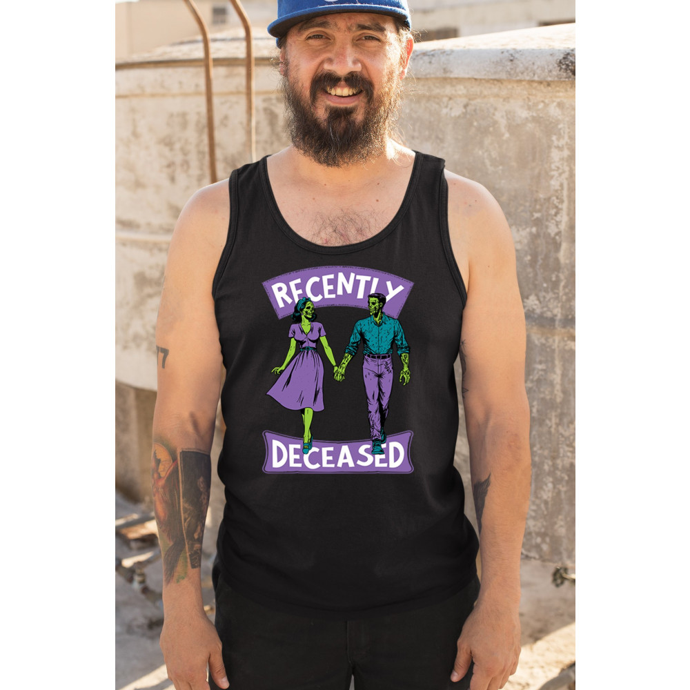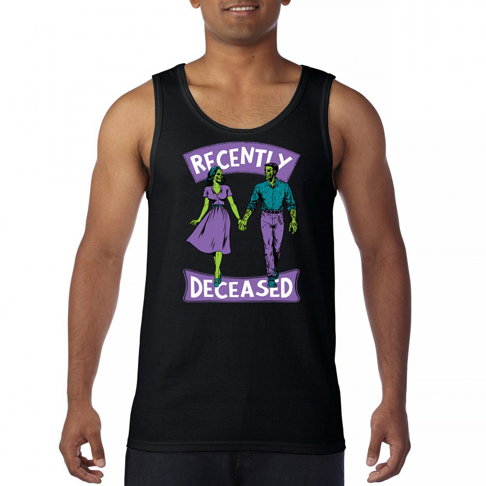 RECENTLY DECEASED men's tank top spooky halloween trick or treat zombie black