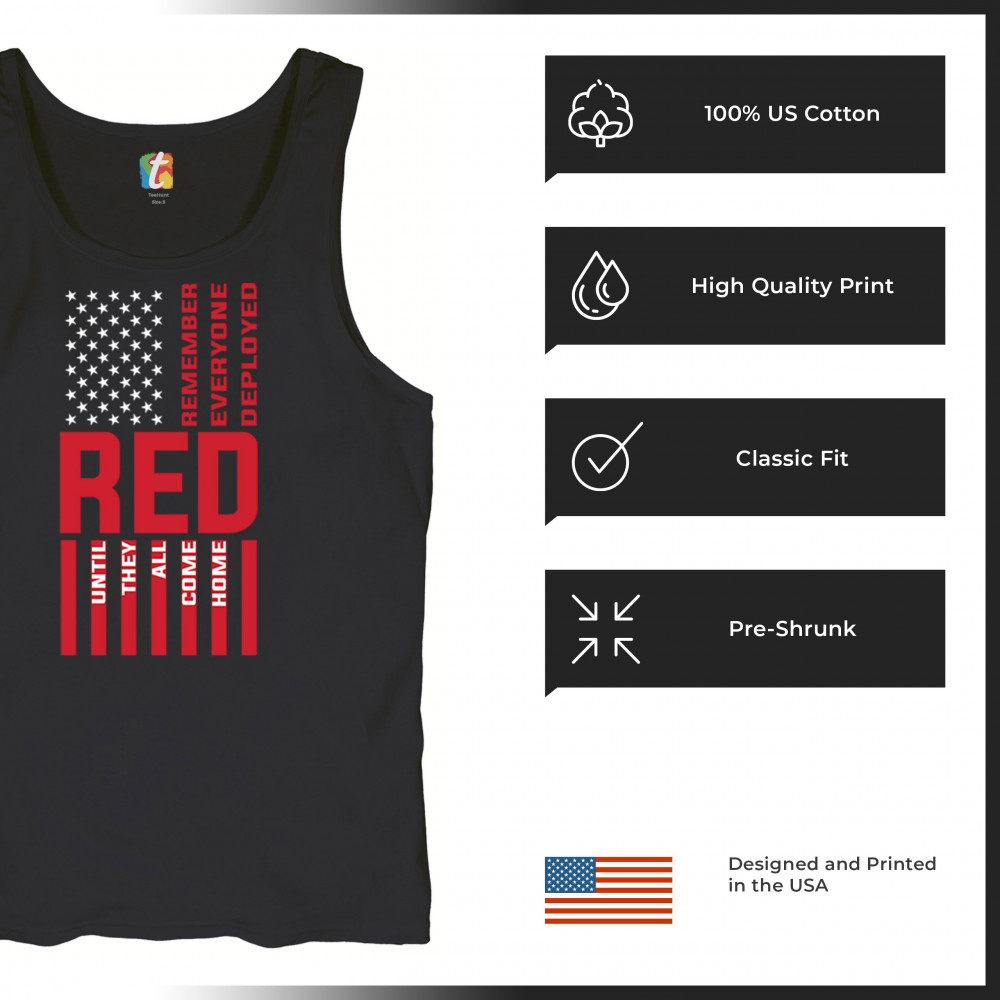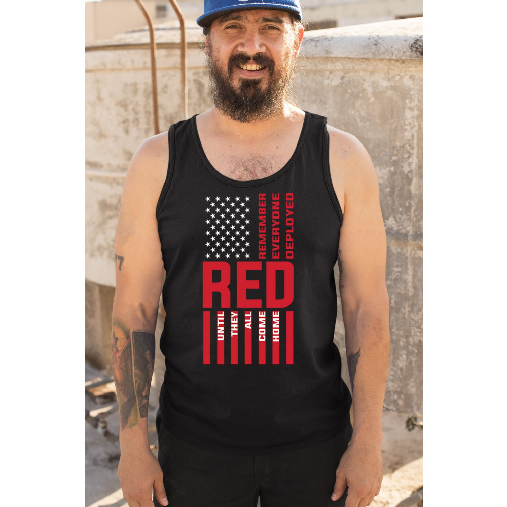 Support our troops with the "RED - Remember Everyone Deployed" design. A powerful reminder to honor our soldiers until they all come home. Ideal for patriotic events and daily wear.