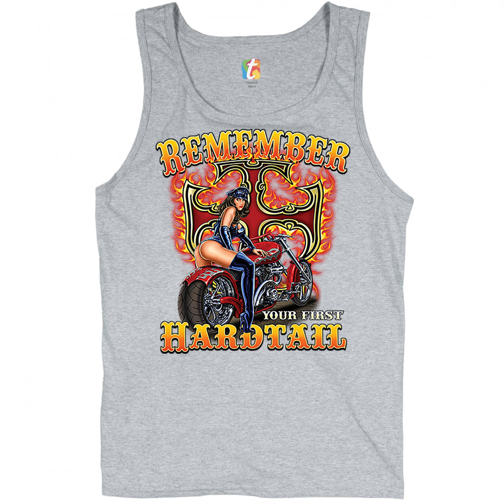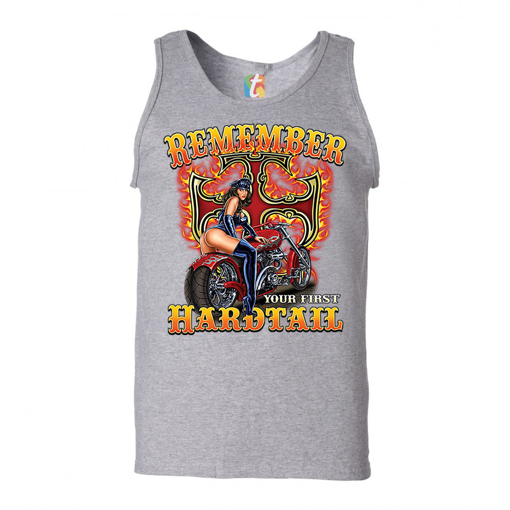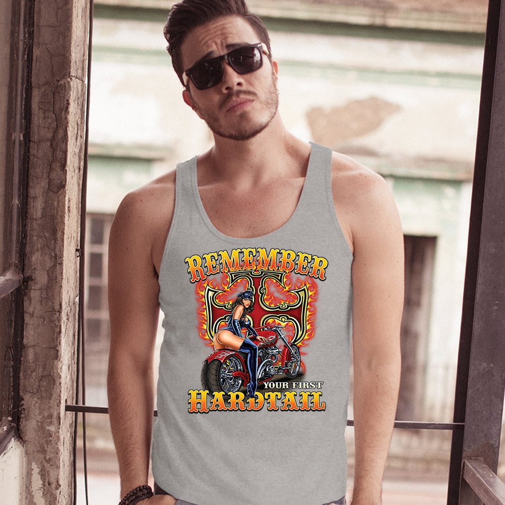 REMEMBER YOUR FIRST HARDTAIL tank top biker babe motorcycle chopper men's top gray