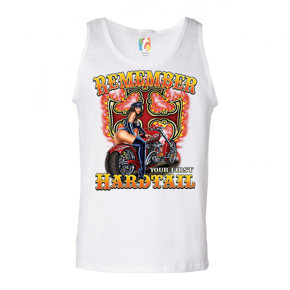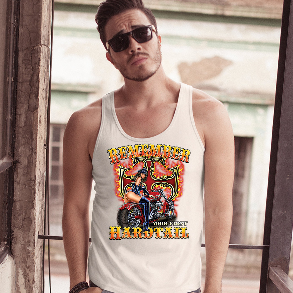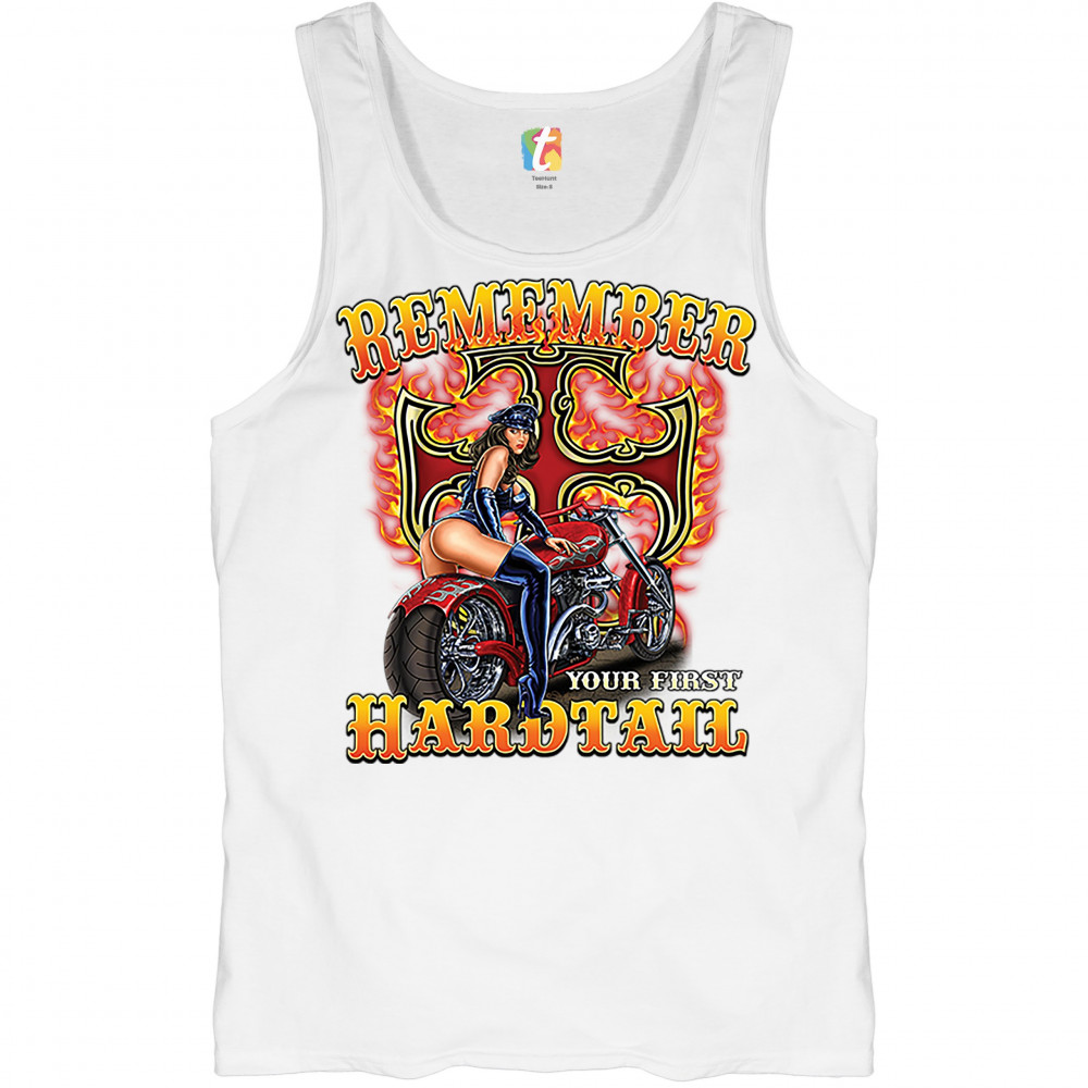 REMEMBER YOUR FIRST HARDTAIL tank top biker babe motorcycle chopper men's top white