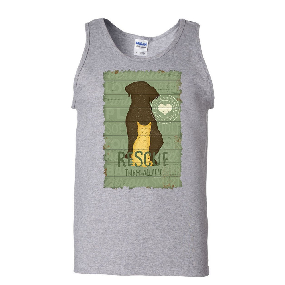 RESCUE THEM ALL tank top animal shelter dog cat paw kitten puppy sleeveless gray