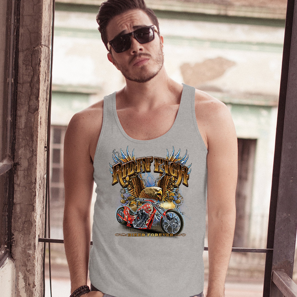 RIDIN' HIGH tank top biker forever chopper rider american eagle men's top gray