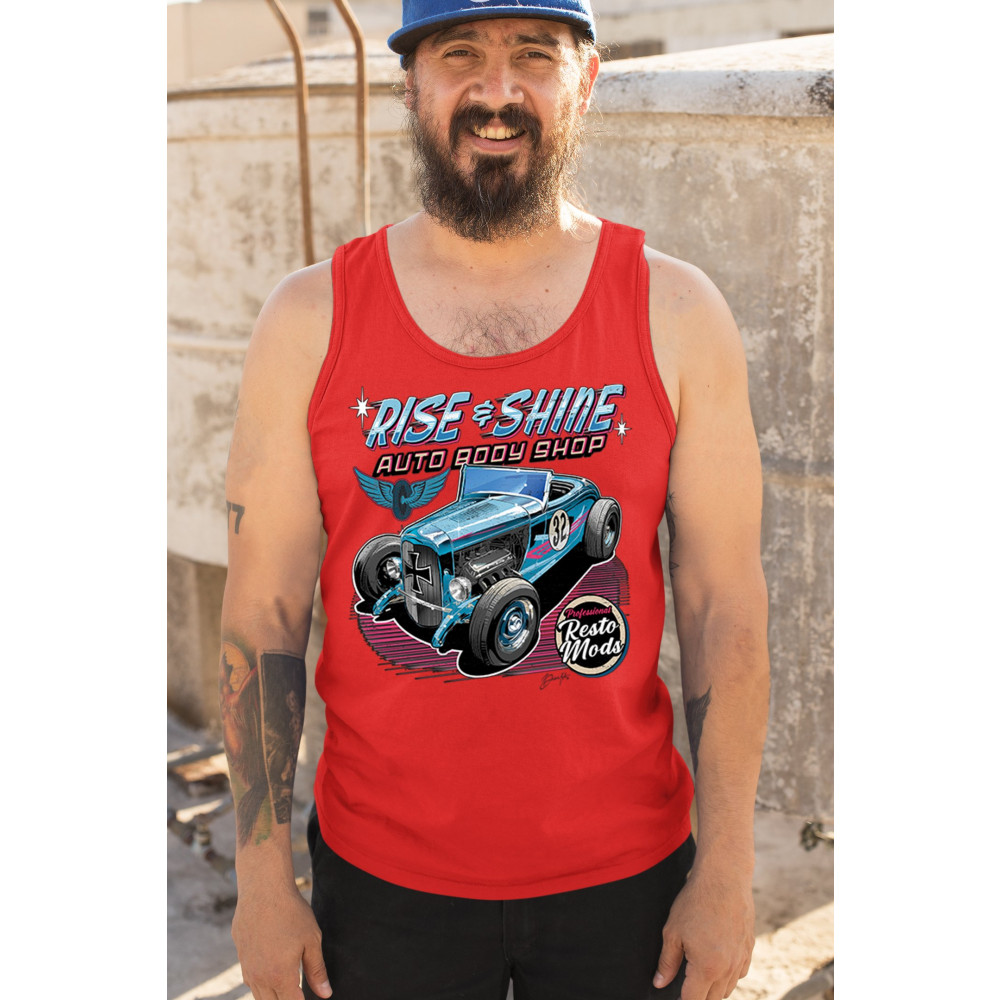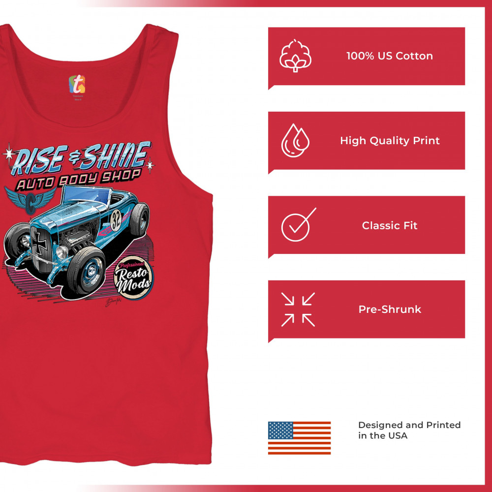 Celebrate vintage car culture with our "Rise & Shine Auto Body Shop" design. Perfect for car enthusiasts and auto restoration fans. Comfortable and durable.