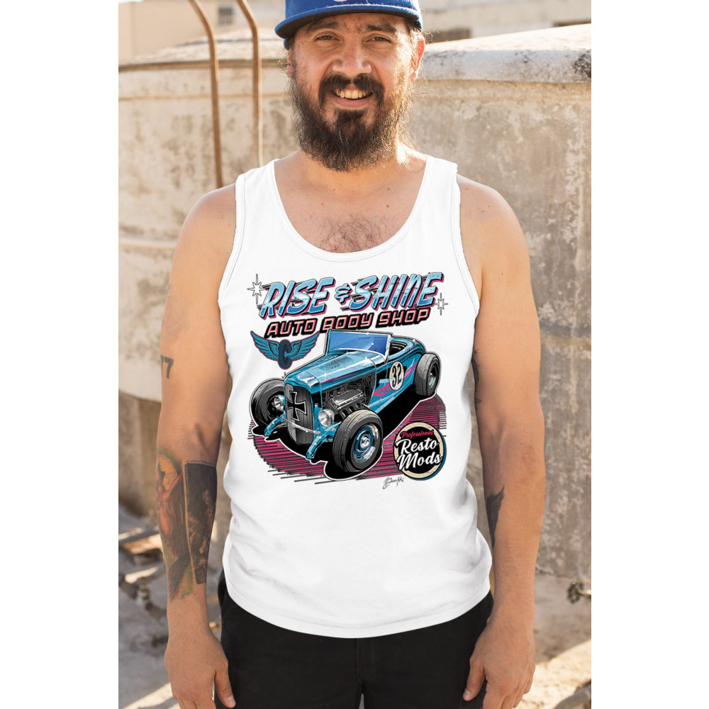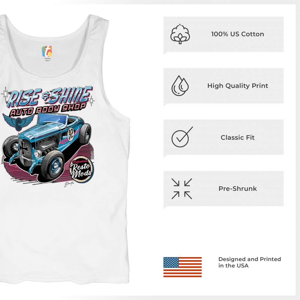 Celebrate vintage car culture with our "Rise & Shine Auto Body Shop" design. Perfect for car enthusiasts and auto restoration fans. Comfortable and durable.