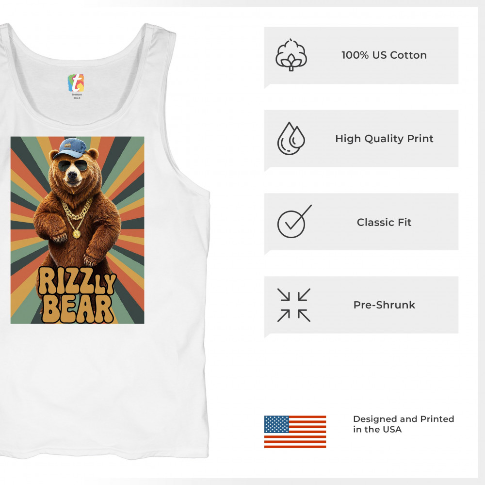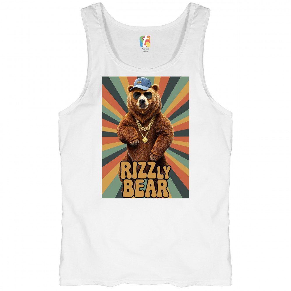 Here's to the bear that got the 'rizz.' With shades on and bling out, this bear is not just part of the scene; it is the scene. This design says 'I'm here to party', and the party doesn't start till the Rizzly Bear walks in.