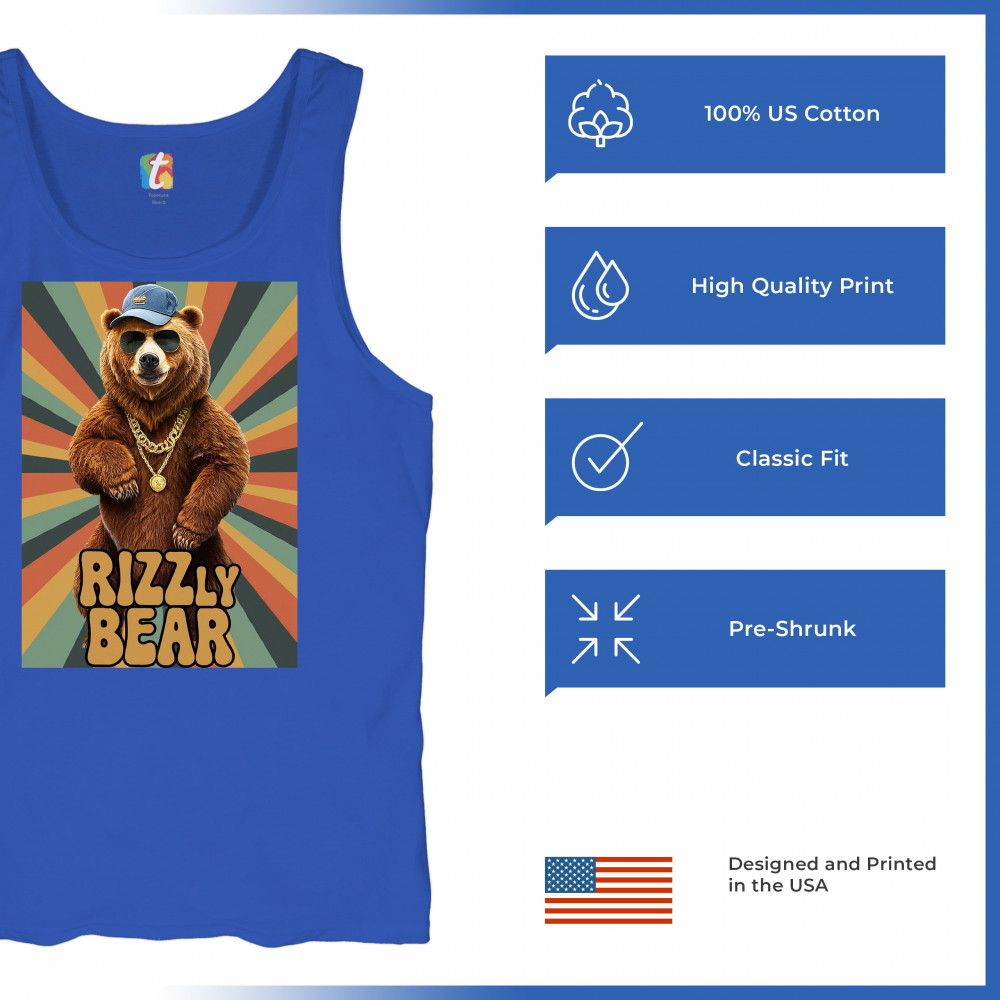 Here's to the bear that got the 'rizz.' With shades on and bling out, this bear is not just part of the scene; it is the scene. This design says 'I'm here to party', and the party doesn't start till the Rizzly Bear walks in.