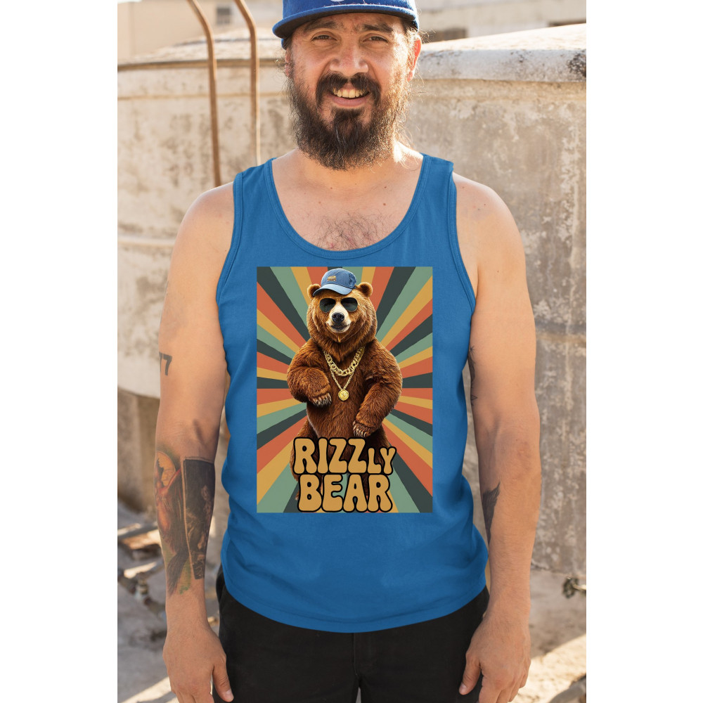 What happens when a bear strolls through the city and grabs a cap and some gold? You get the Rizzly Bear. It's fun, fearless, and a bit funky – a true original in the world of graphic design, just like you.