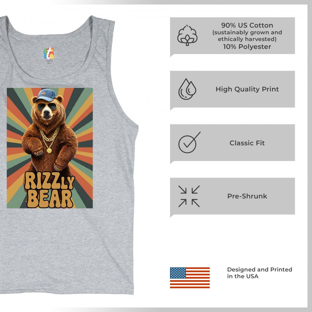 Here's to the bear that got the 'rizz.' With shades on and bling out, this bear is not just part of the scene; it is the scene. This design says 'I'm here to party', and the party doesn't start till the Rizzly Bear walks in.