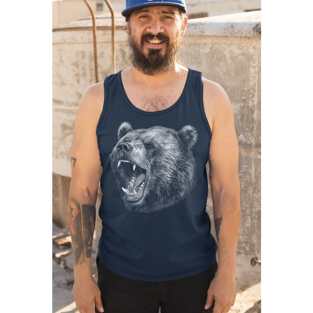 Bold roaring bear design for hunters, survivalists, and nature lovers. Perfect for hikes, camps, forest wear, and outdoor gear.