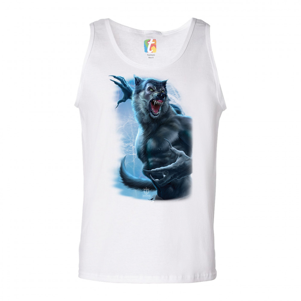 ROARING WEREWOLF tank top halloween horror scary gothic monster men's top white