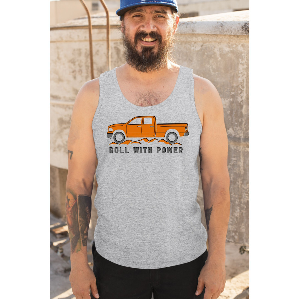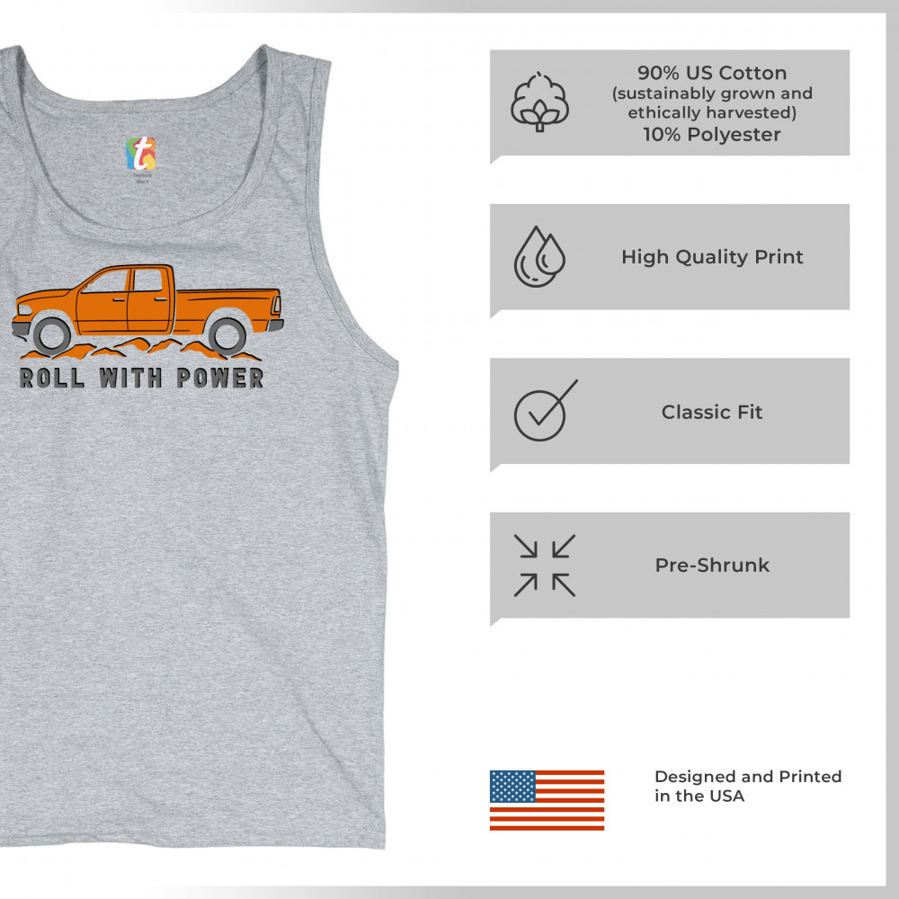 Pickup truck design for off-road fans and truck lovers. Show your road power and style with this bold “Roll With Power†truck graphic.