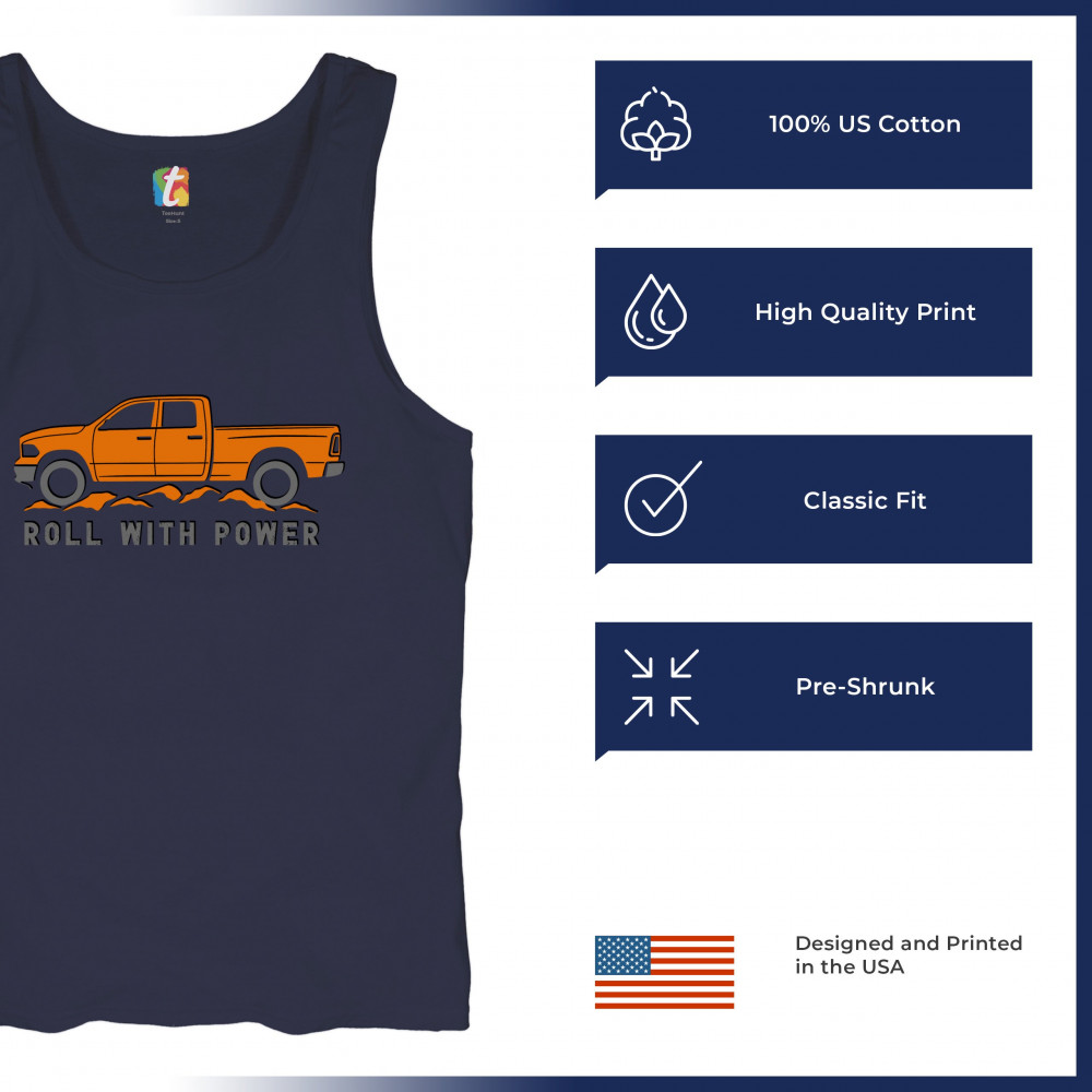 Pickup truck design for off-road fans and truck lovers. Show your road power and style with this bold “Roll With Power†truck graphic.
