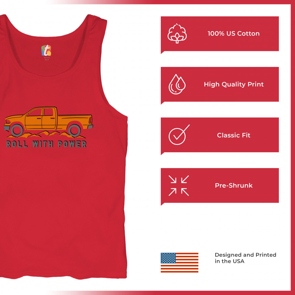 Pickup truck design for off-road fans and truck lovers. Show your road power and style with this bold “Roll With Power†truck graphic.