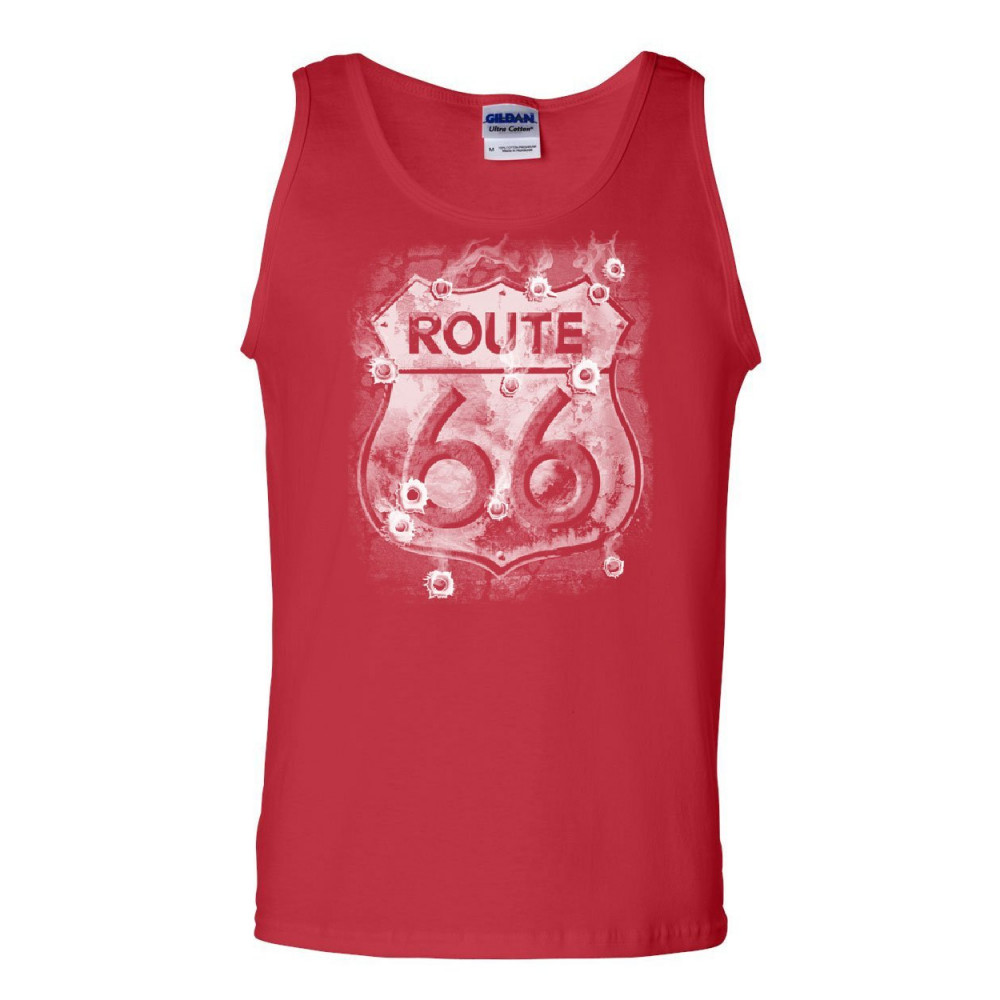 ROUTE 66 SIGN WITH BULLET HOLES route 66 tank top bullet holes the mother road american highway sleeveless red