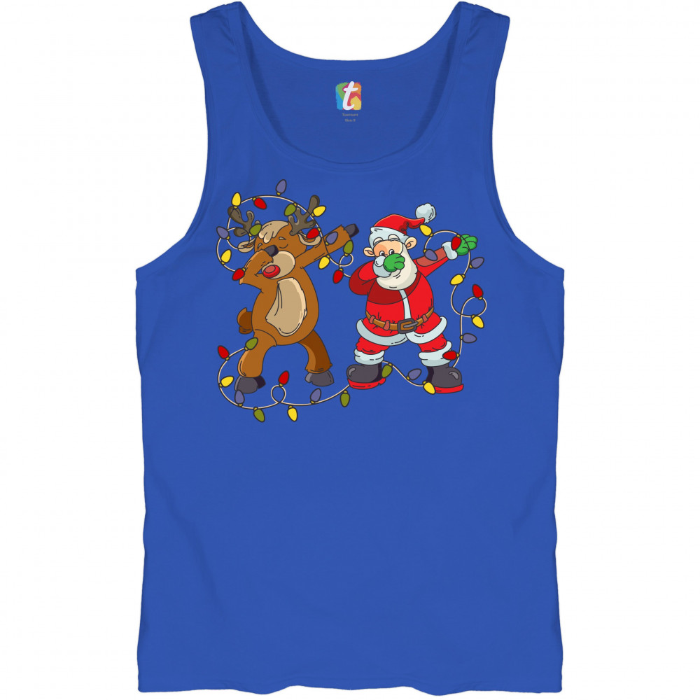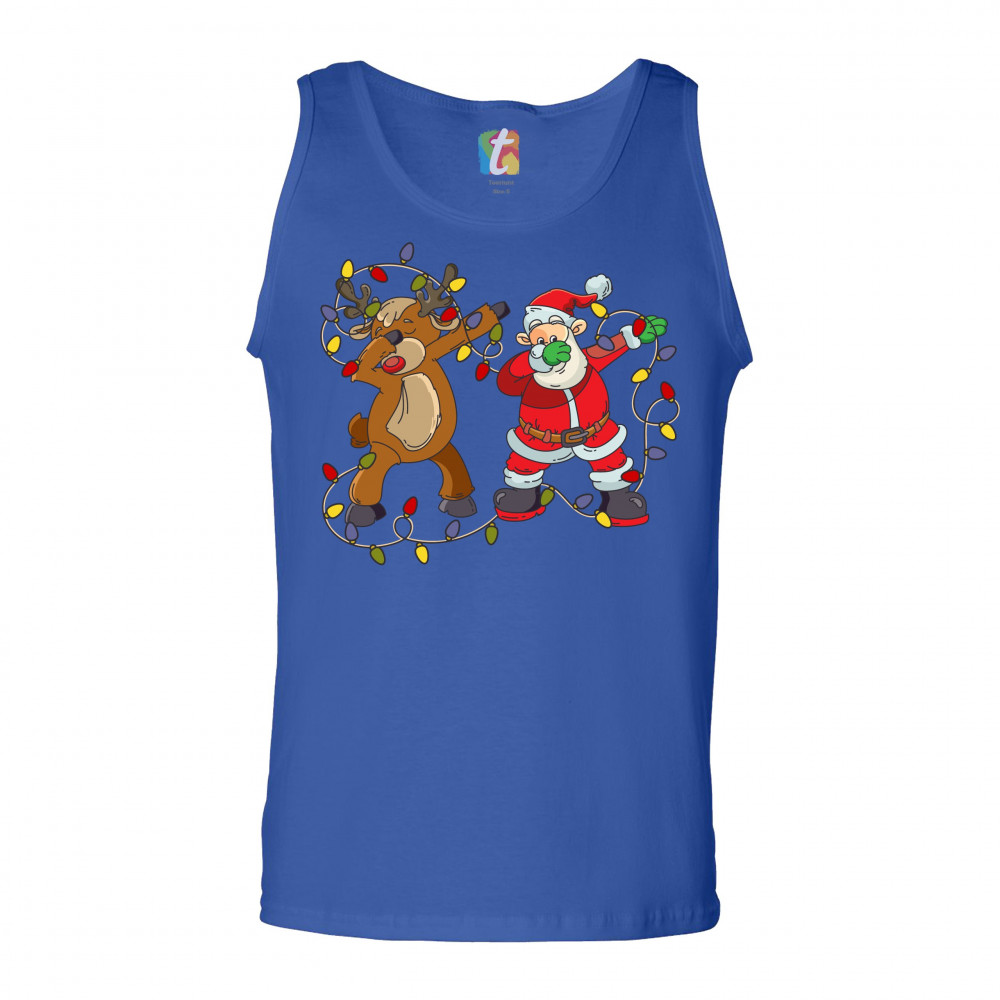 SANTA CLAUS AND RUDOLPH DAB DANCE tank top merry christmas xmas men's top royal blue