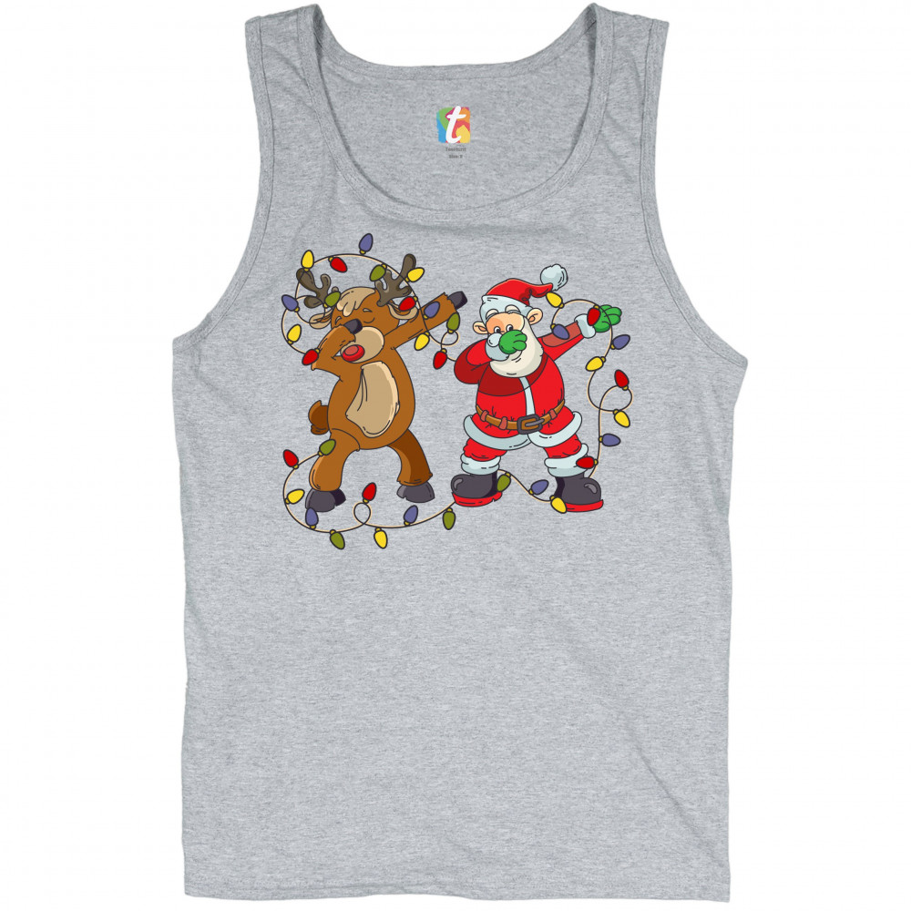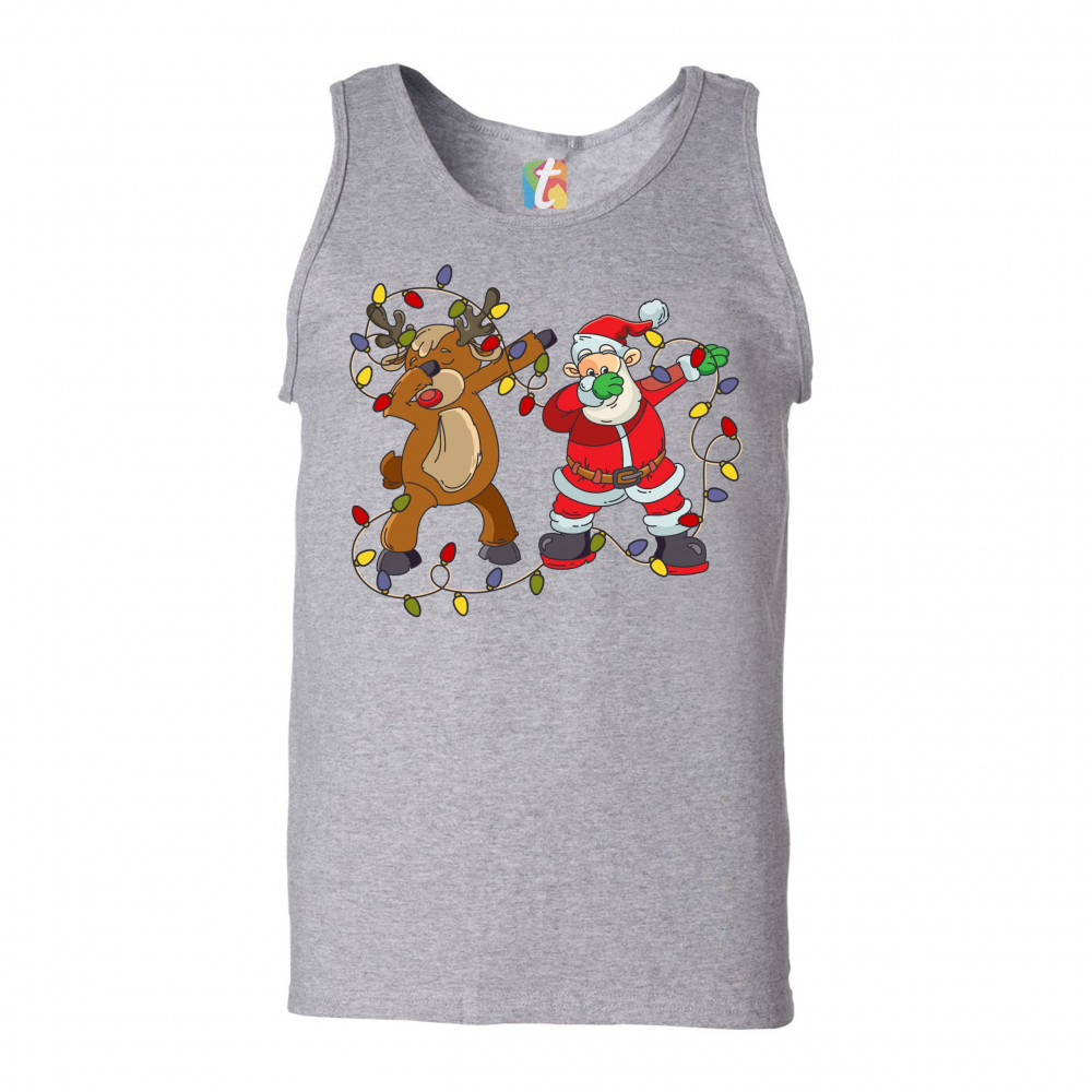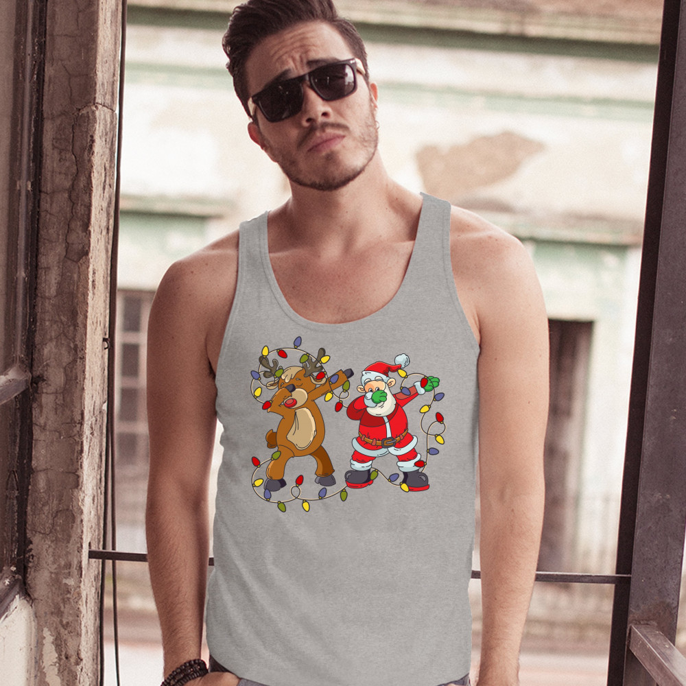 SANTA CLAUS AND RUDOLPH DAB DANCE tank top merry christmas xmas men's top gray