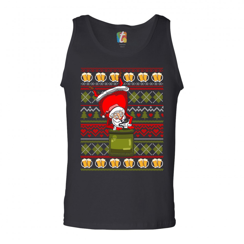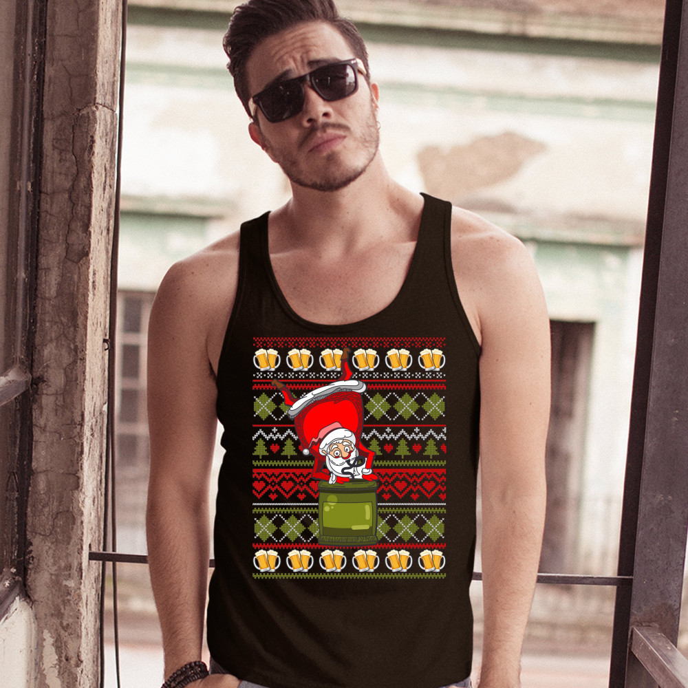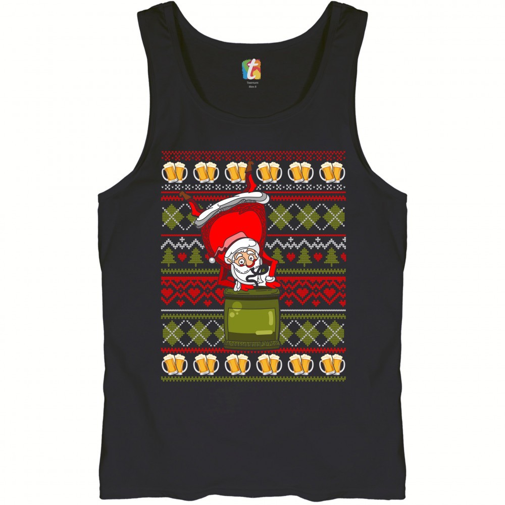 SANTA CLAUS KEG STAND tank top christmas ugly sweater beer drinking men's top black