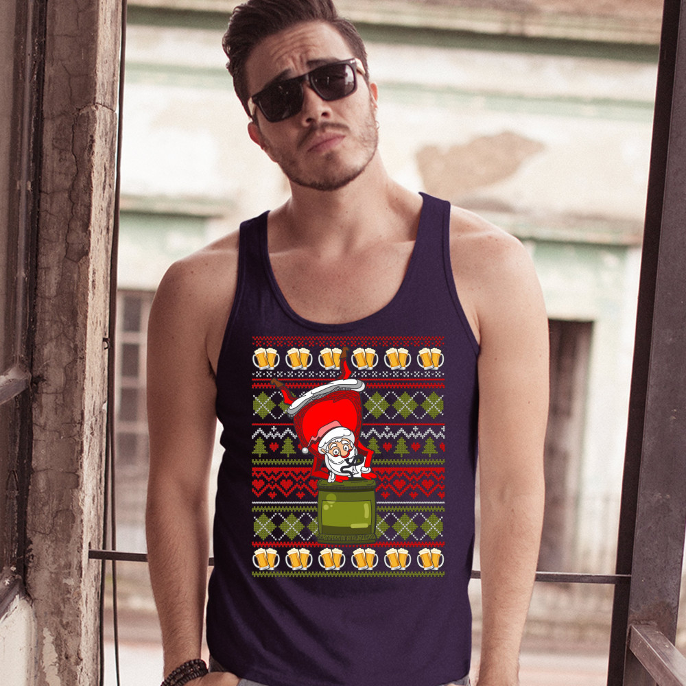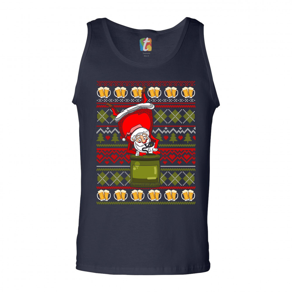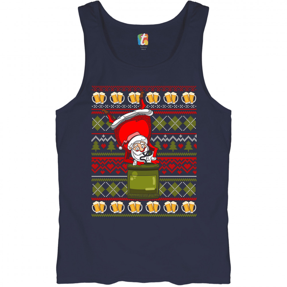 SANTA CLAUS KEG STAND tank top christmas ugly sweater beer drinking men's top navy blue