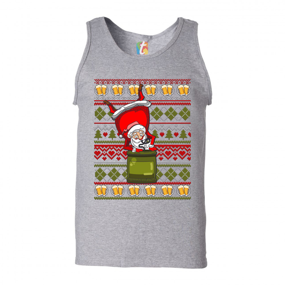 SANTA CLAUS KEG STAND tank top christmas ugly sweater beer drinking men's top gray