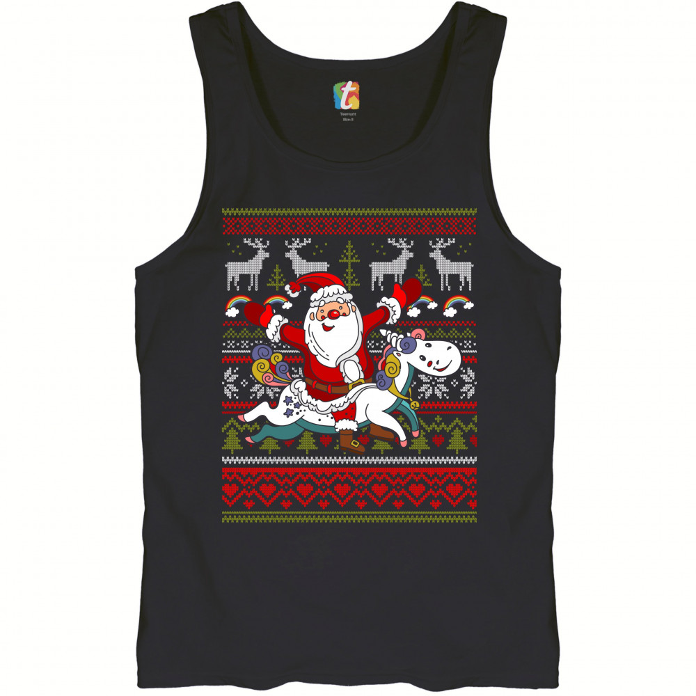 SANTA CLAUS RIDING A UNICORN tank top merry christmas ugly sweater men's top black