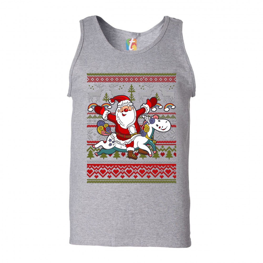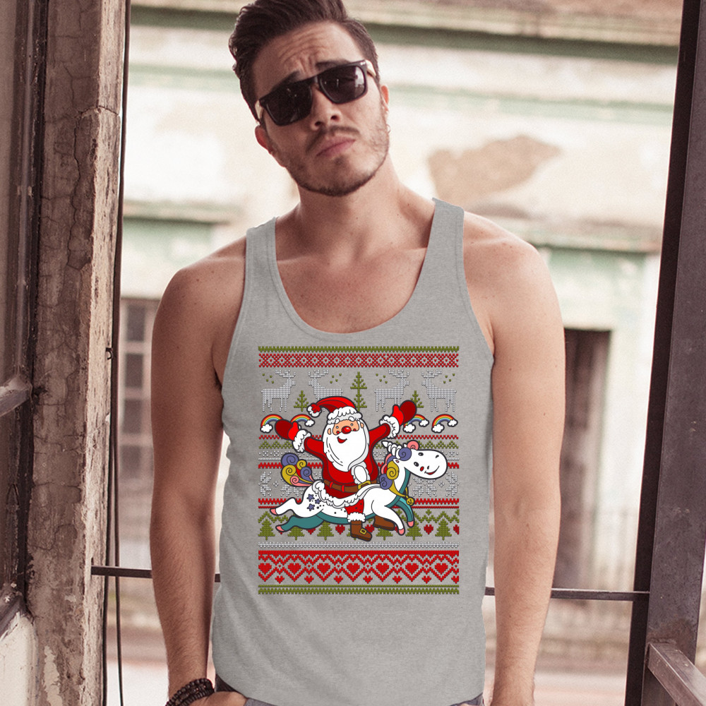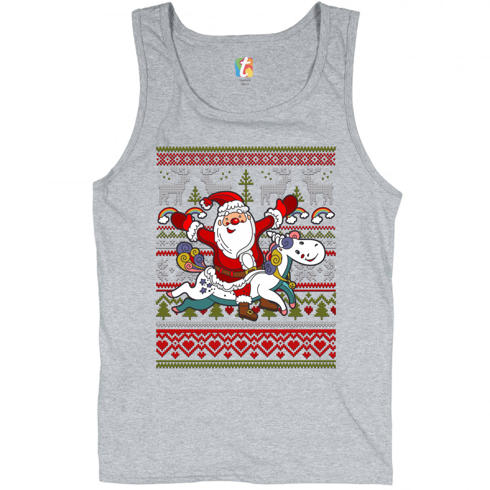 SANTA CLAUS RIDING A UNICORN tank top merry christmas ugly sweater men's top gray