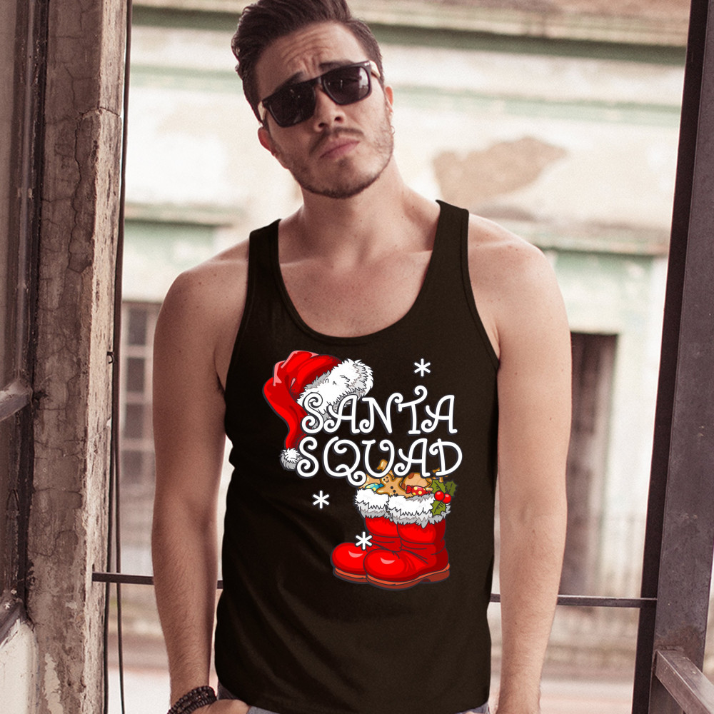 SANTA SQUAD tank top merry christmas reindeer rudolph elf funny men's top black