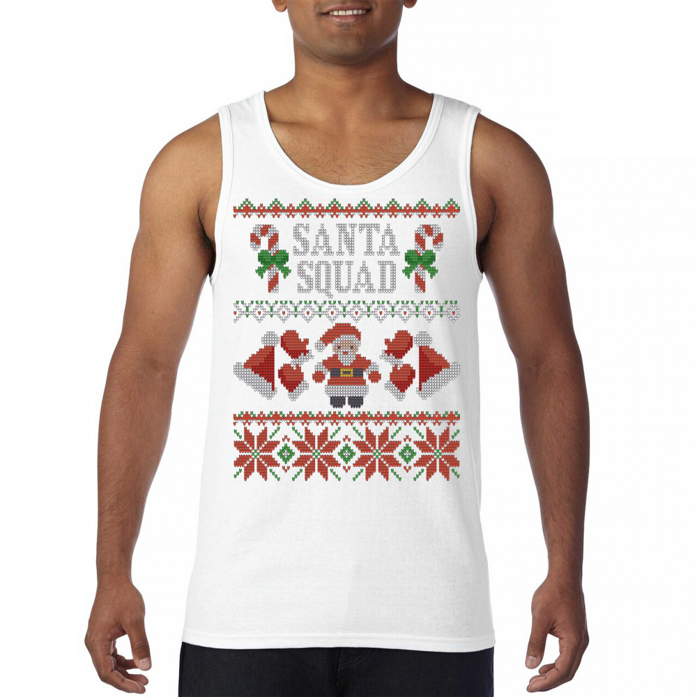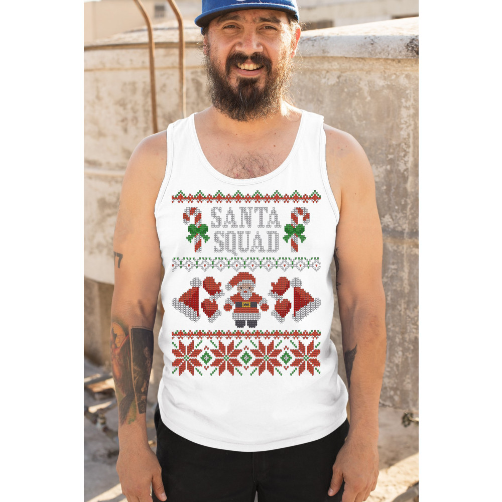 SANTA SQUAD tank top cute ugly sweater merry and bright christmas men's top white