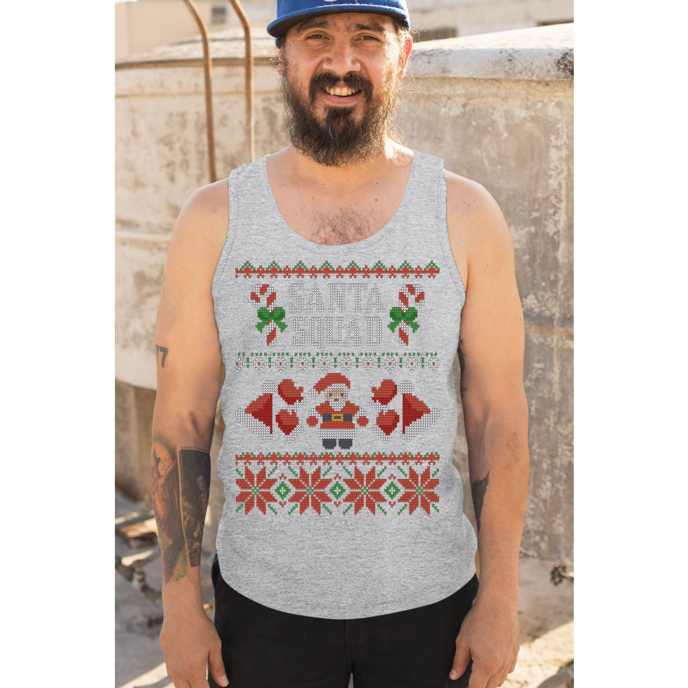 SANTA SQUAD tank top cute ugly sweater merry and bright christmas men's top gray