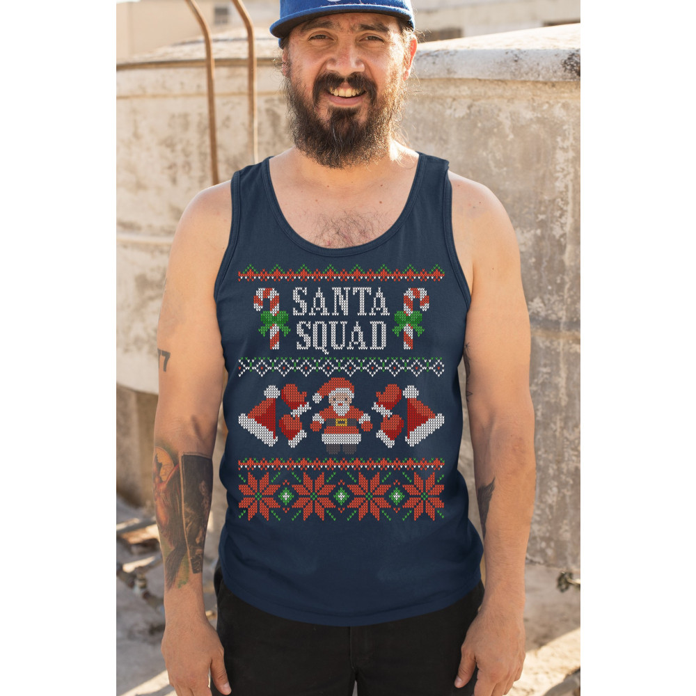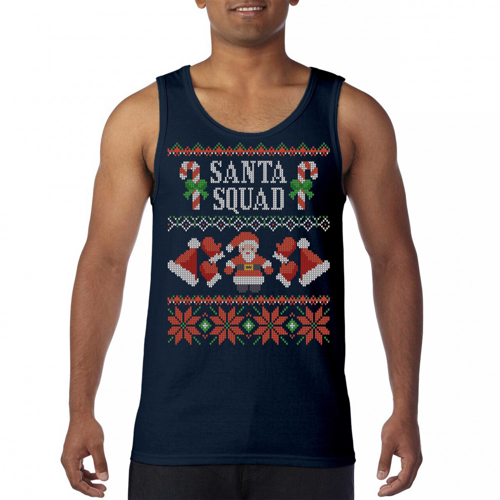 SANTA SQUAD tank top cute ugly sweater merry and bright christmas men's top navy blue