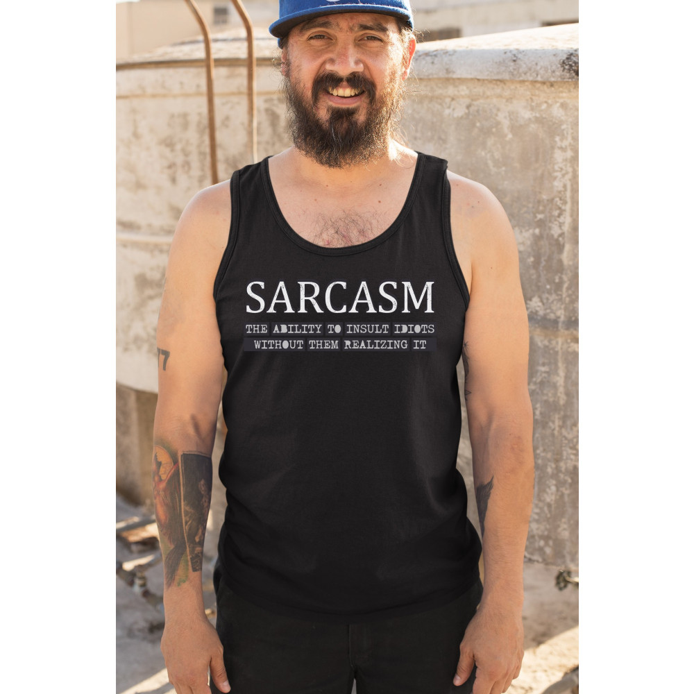 SARCASM tank top ability to insult idiots without them realizing men's top black