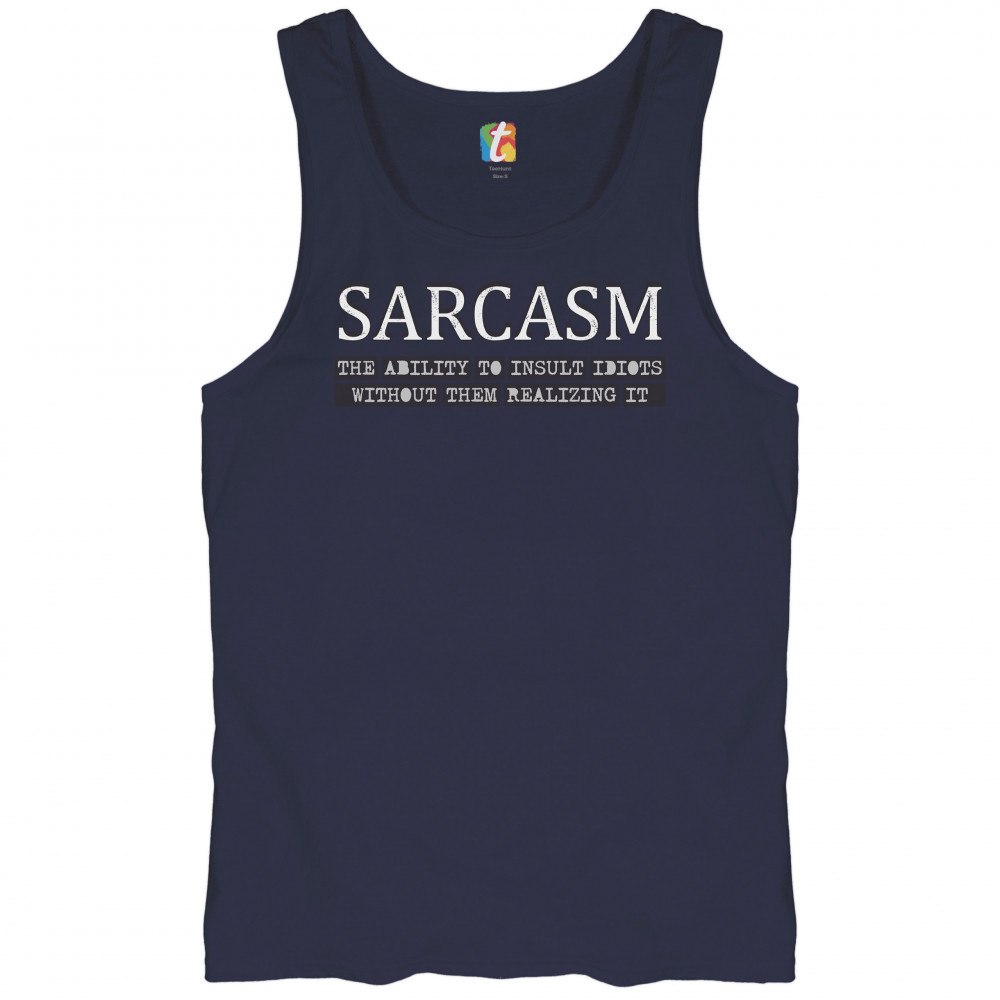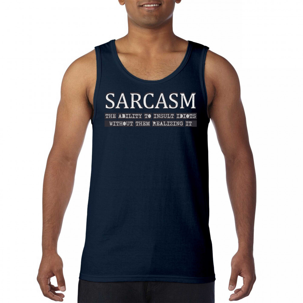 SARCASM tank top ability to insult idiots without them realizing men's top navy blue