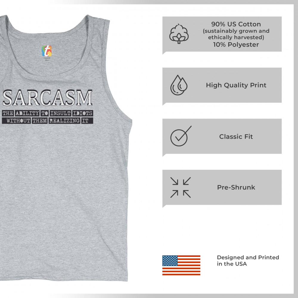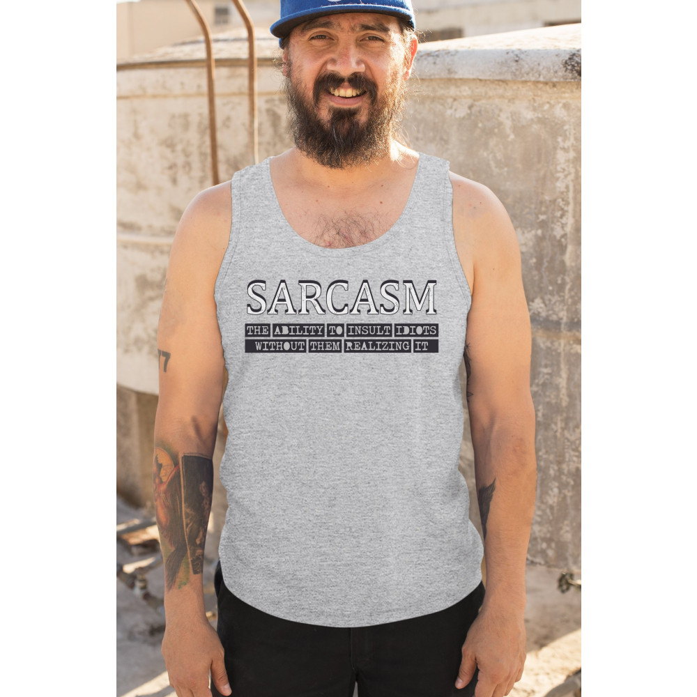 SARCASM tank top ability to insult idiots without them realizing men's top gray