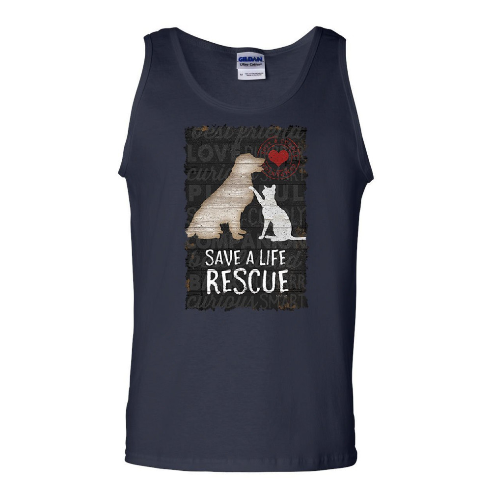 SAVE A LIFE rescue a pet tank top dog cat kitty puppy shelter paw sleeveless navy blue